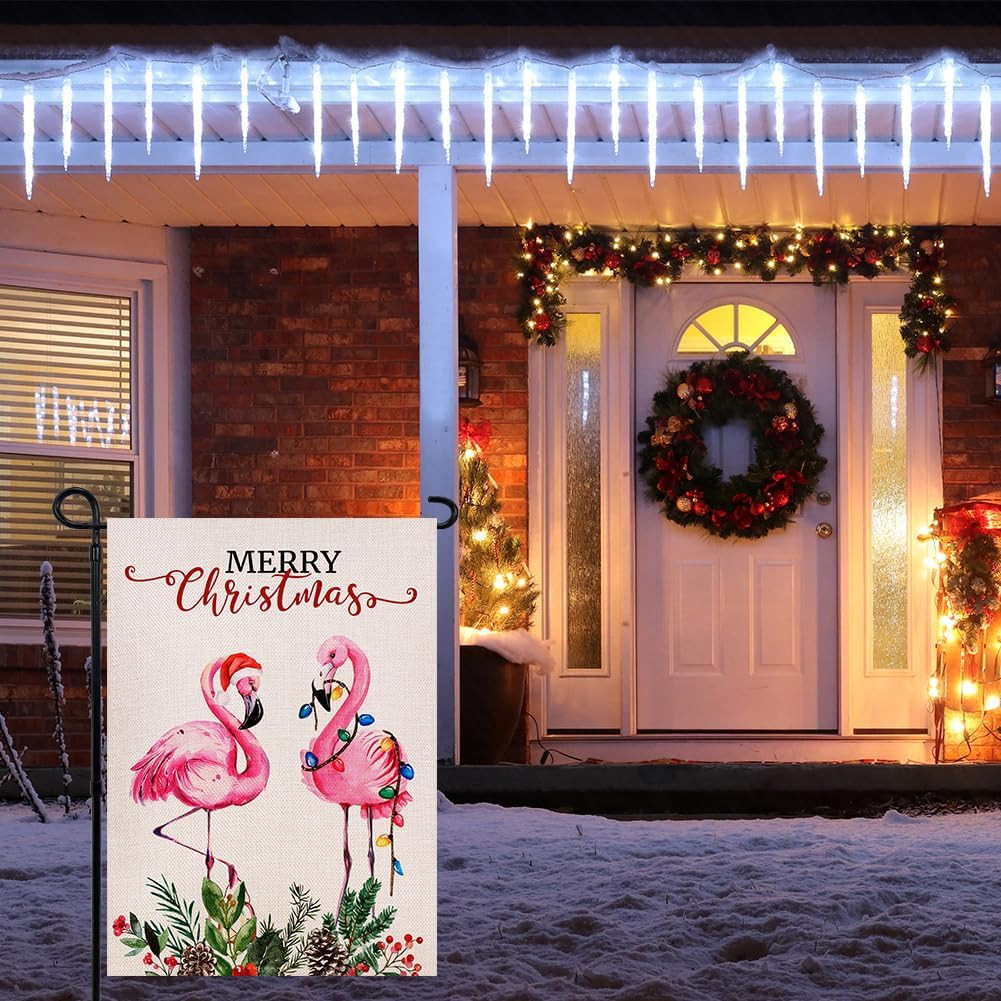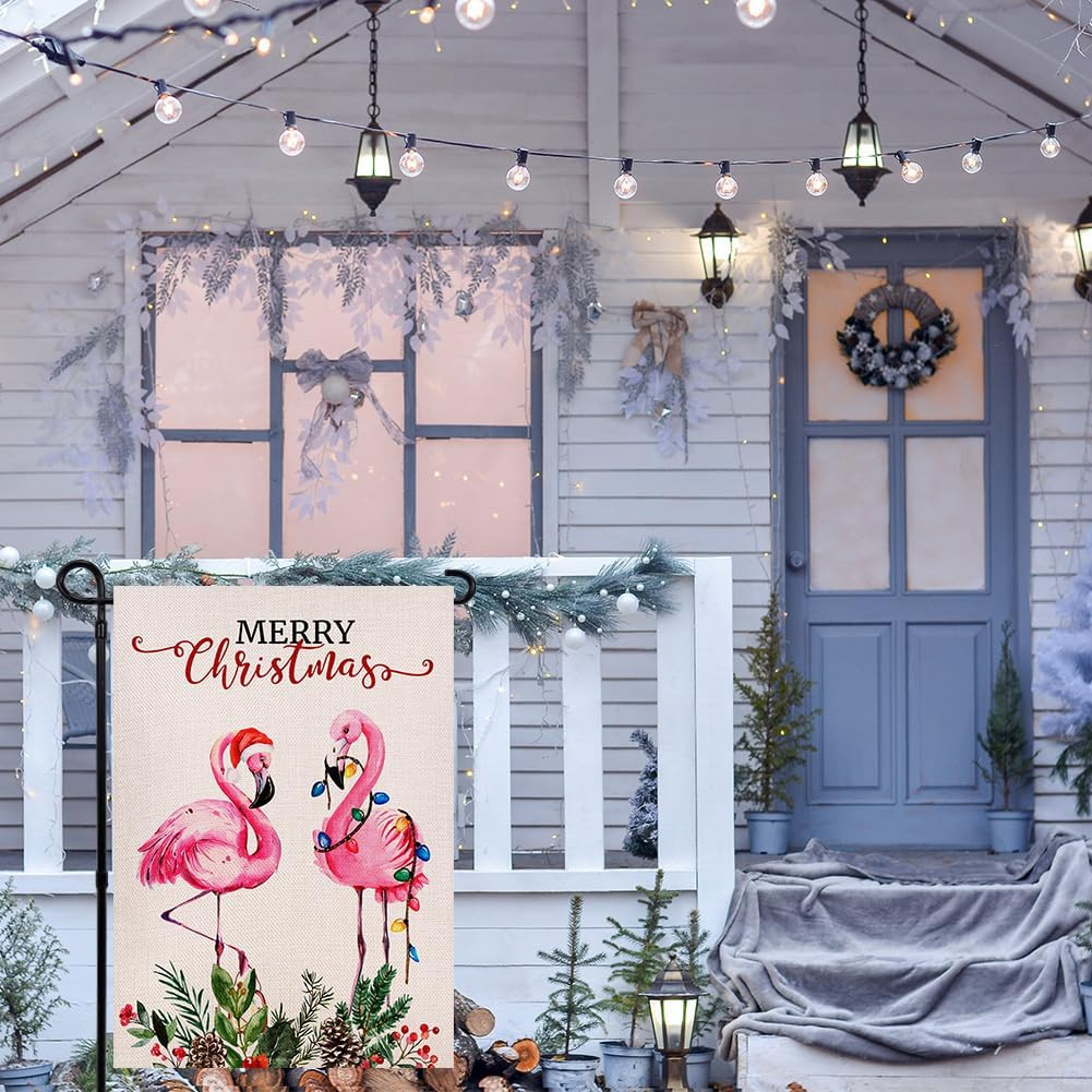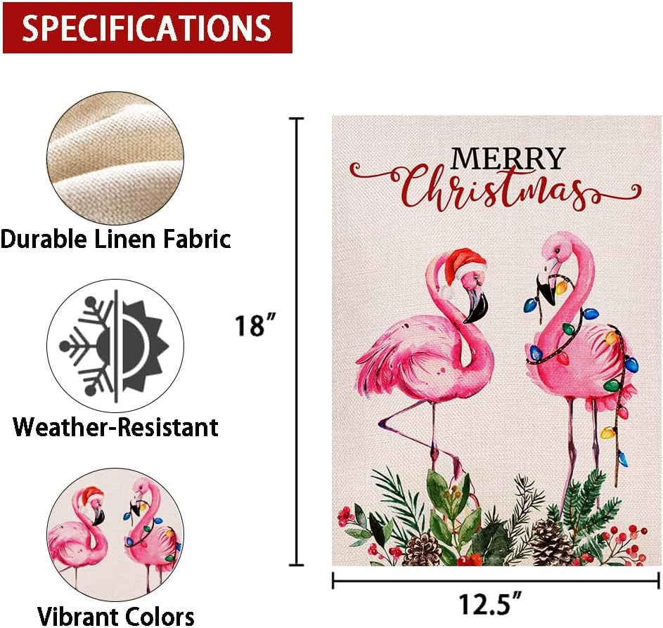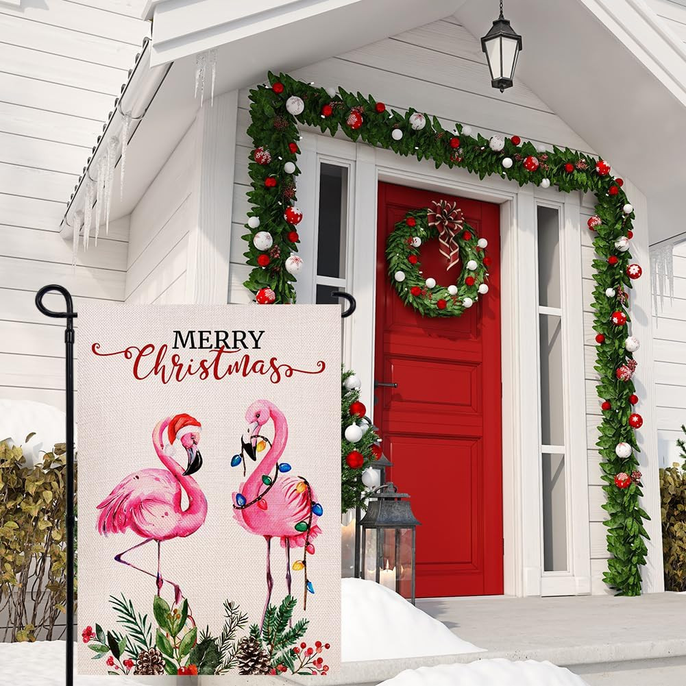 Merry Christmas Flamingo Garden Flag 12.5 X 18 Inch Double Sided, Watercolor Pin