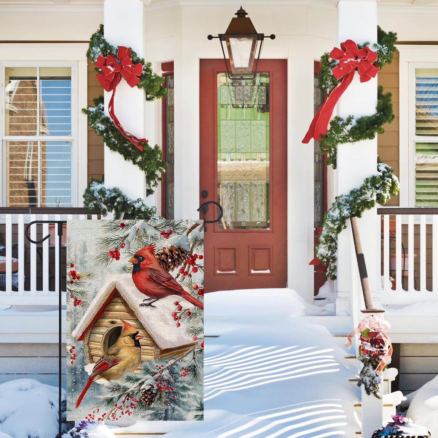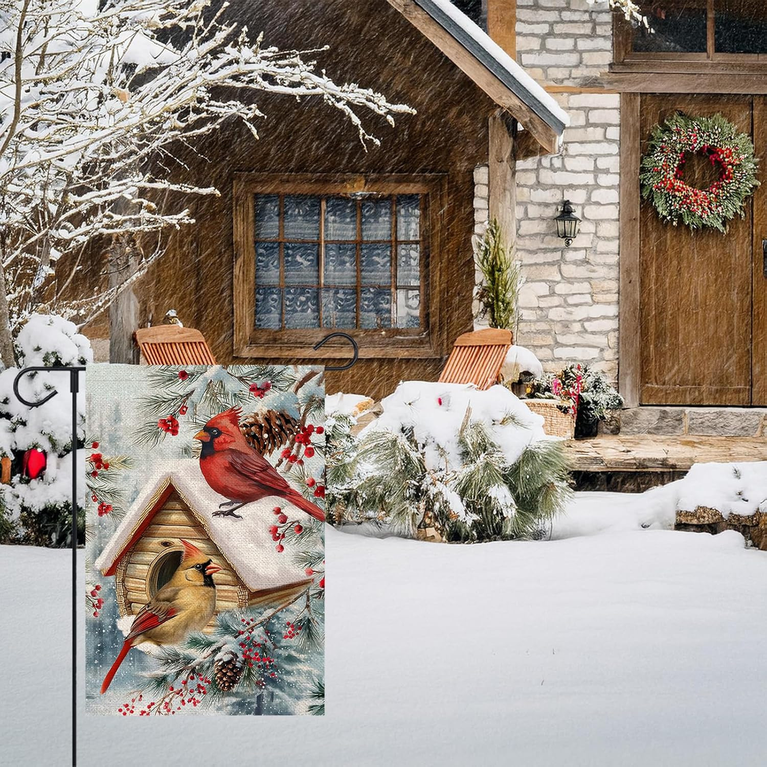 Christmas Winter Garden Flag 12X18 Inch Double Sided Cardinal Bird Holly Berries