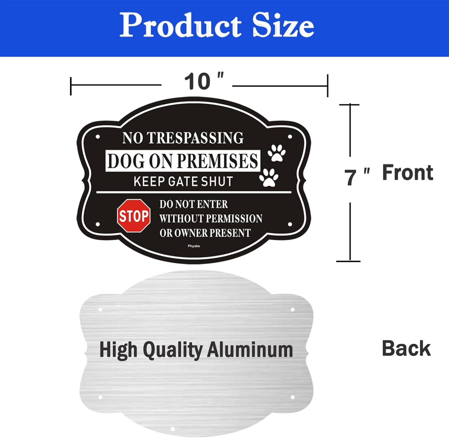 Pre-printed: No Trespassing, Dog On Premises, Keep Gate Shut, Do Not Enter