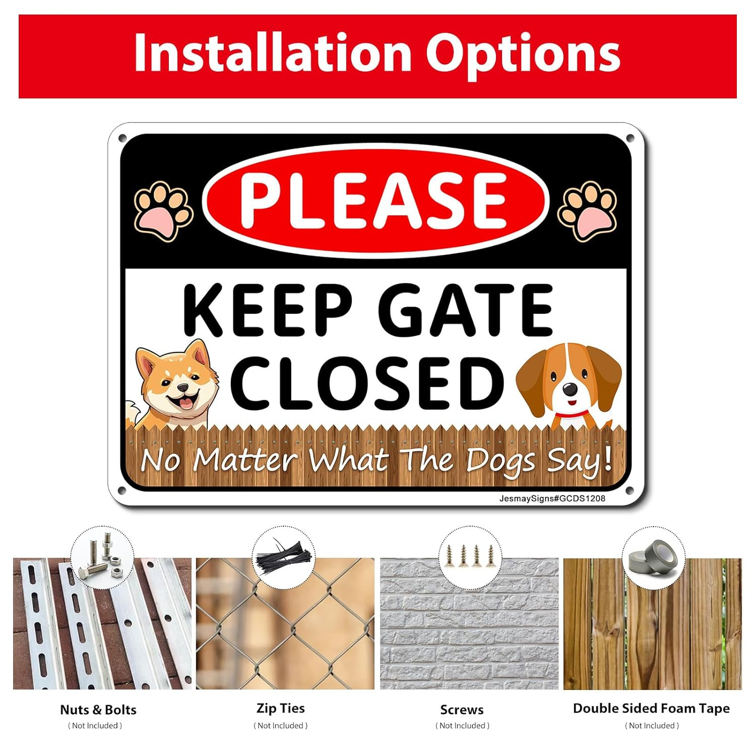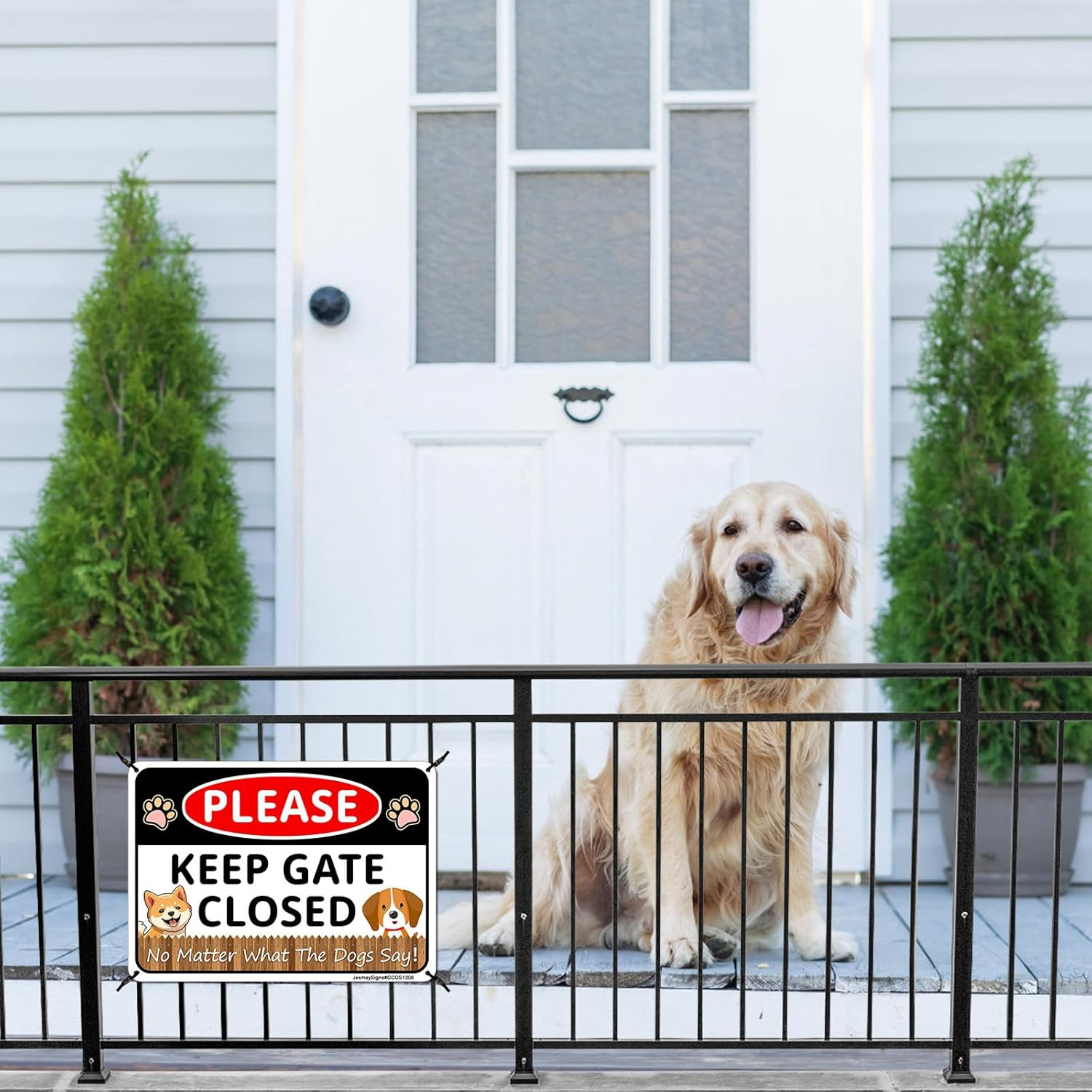 2Pack Dog Signs - 12x8 Reflective Aluminum, Keep Gate Closed, Welcome Dog D...