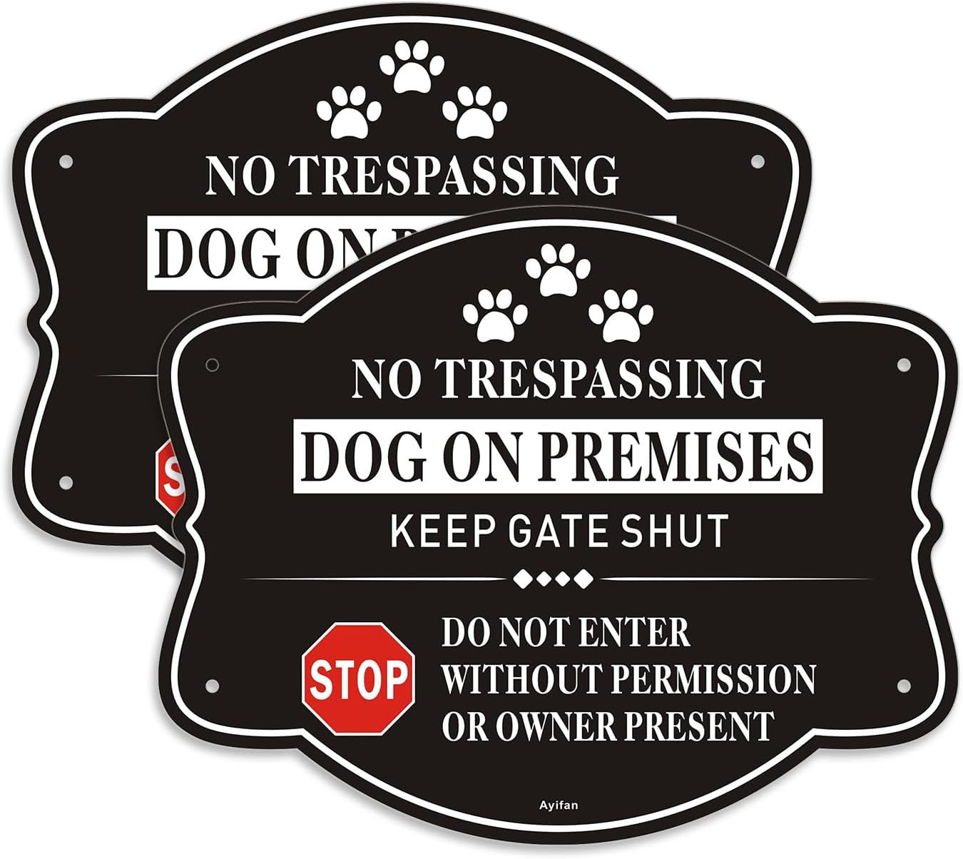 2 Pack Beware of Dog Sign Metal Aluminum,10 x 8 inch No Trespassing Dog On Pr...