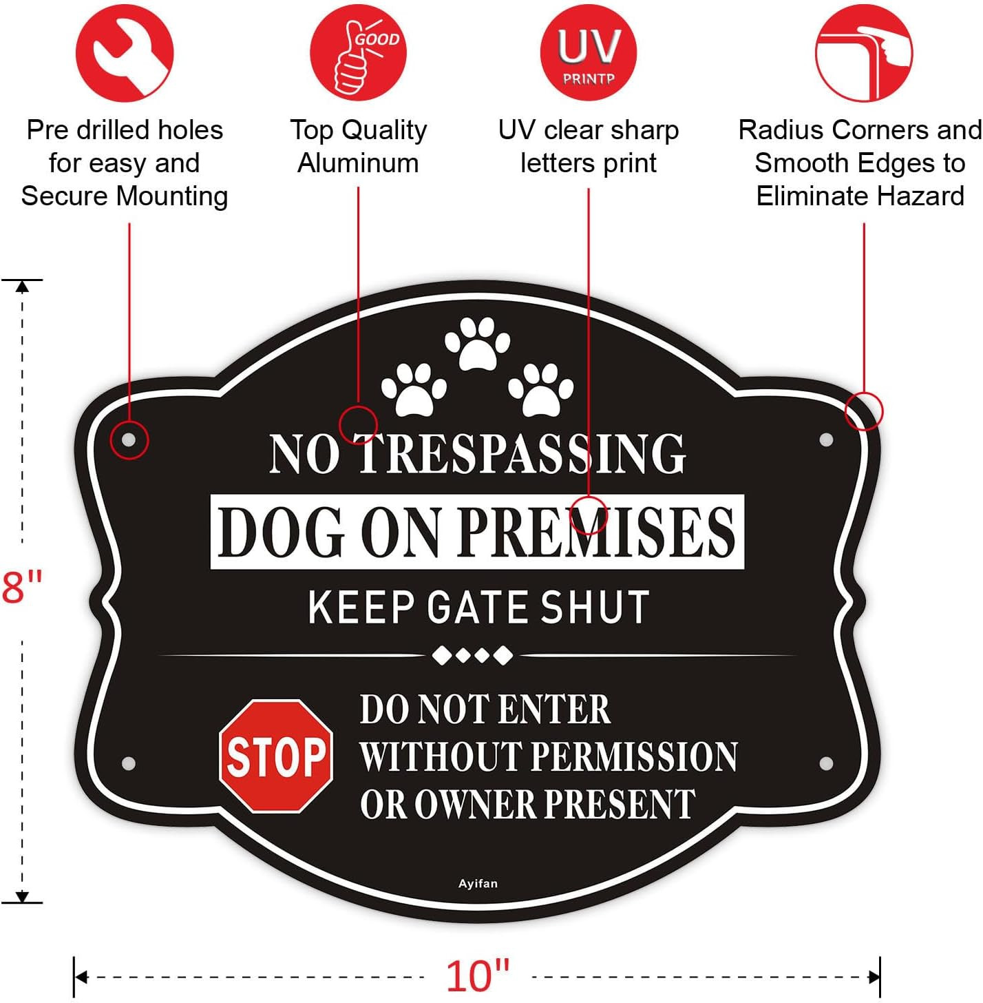 как выглядит 2 Pack Beware of Dog Sign Metal Aluminum,10 x 8 inch No Trespassing Dog On Pr... фото