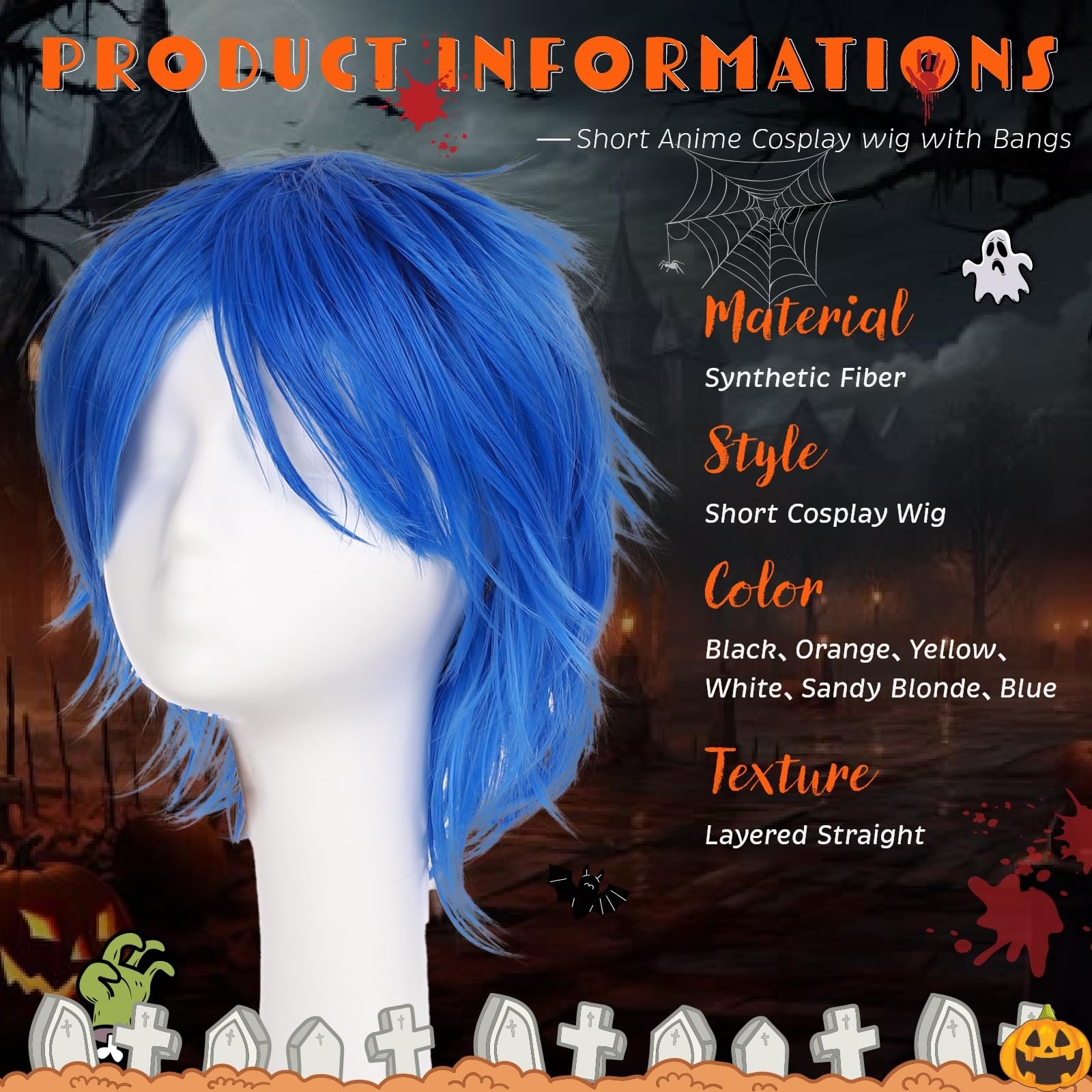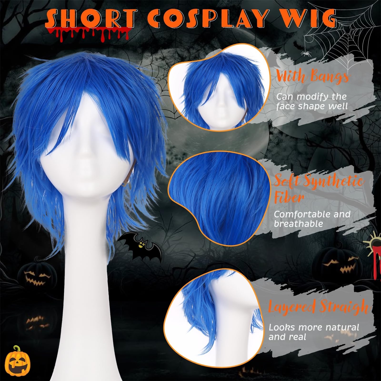 Unisex Cosplay Anime Wigs for Women Men Synthetic Layered Short Hair with Ban...