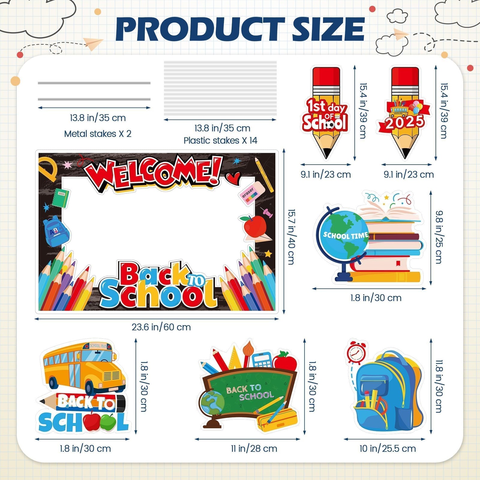 7 Pieces Welcome Back to School Yard Signs with Large Blackboard Photo Frame ...