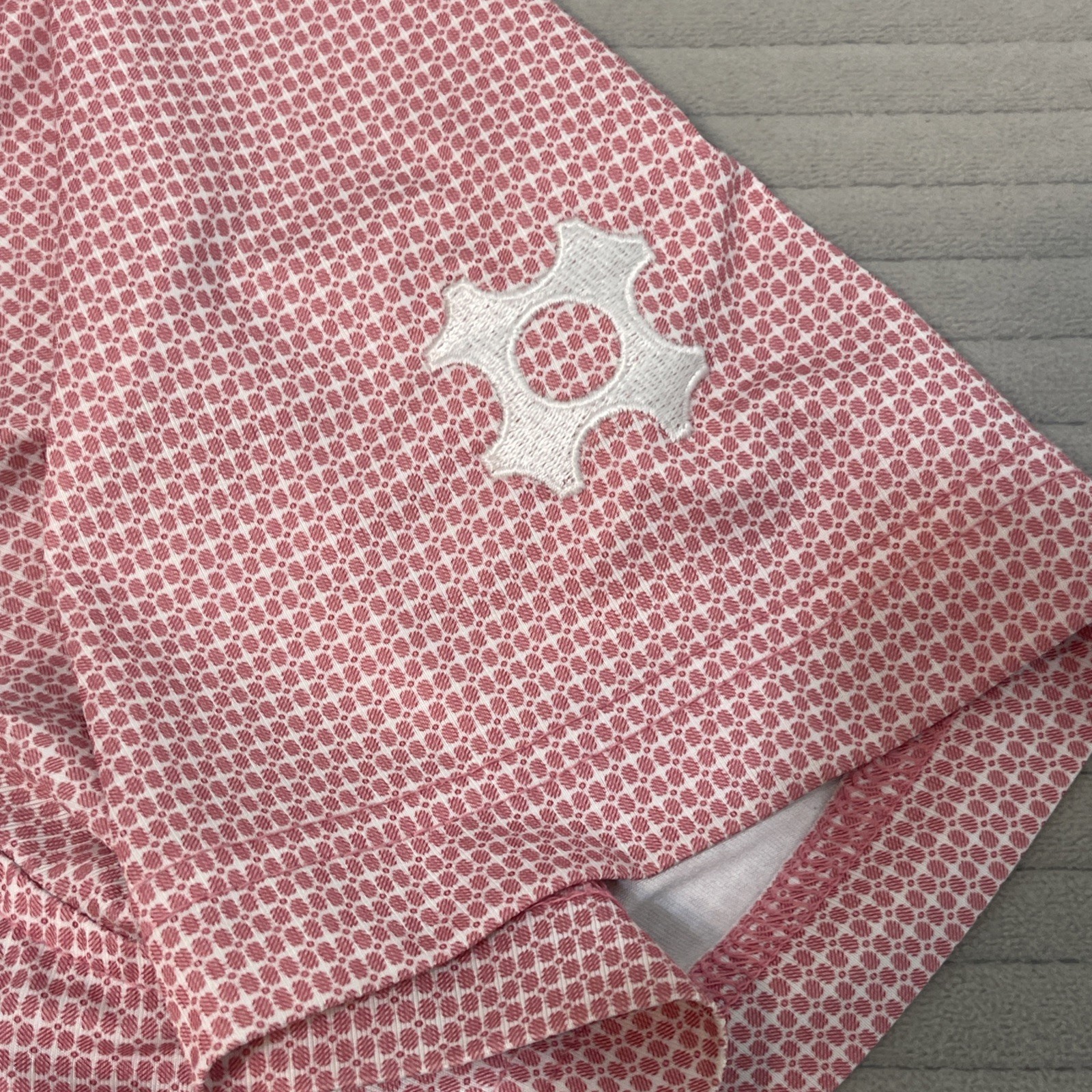 как выглядит Johnnie O Polo Shirt Men s Size Large Performance Golf Red white geometric фото