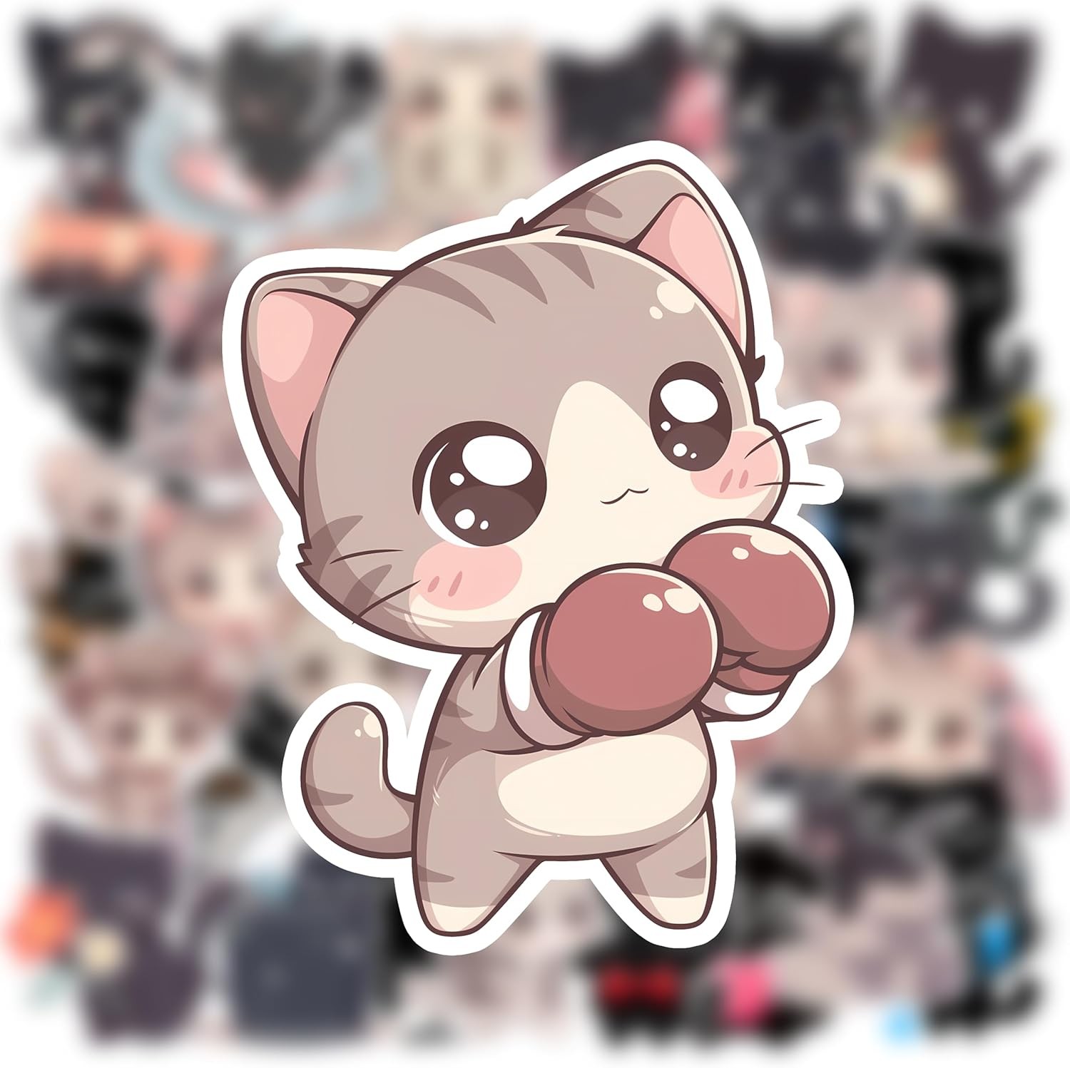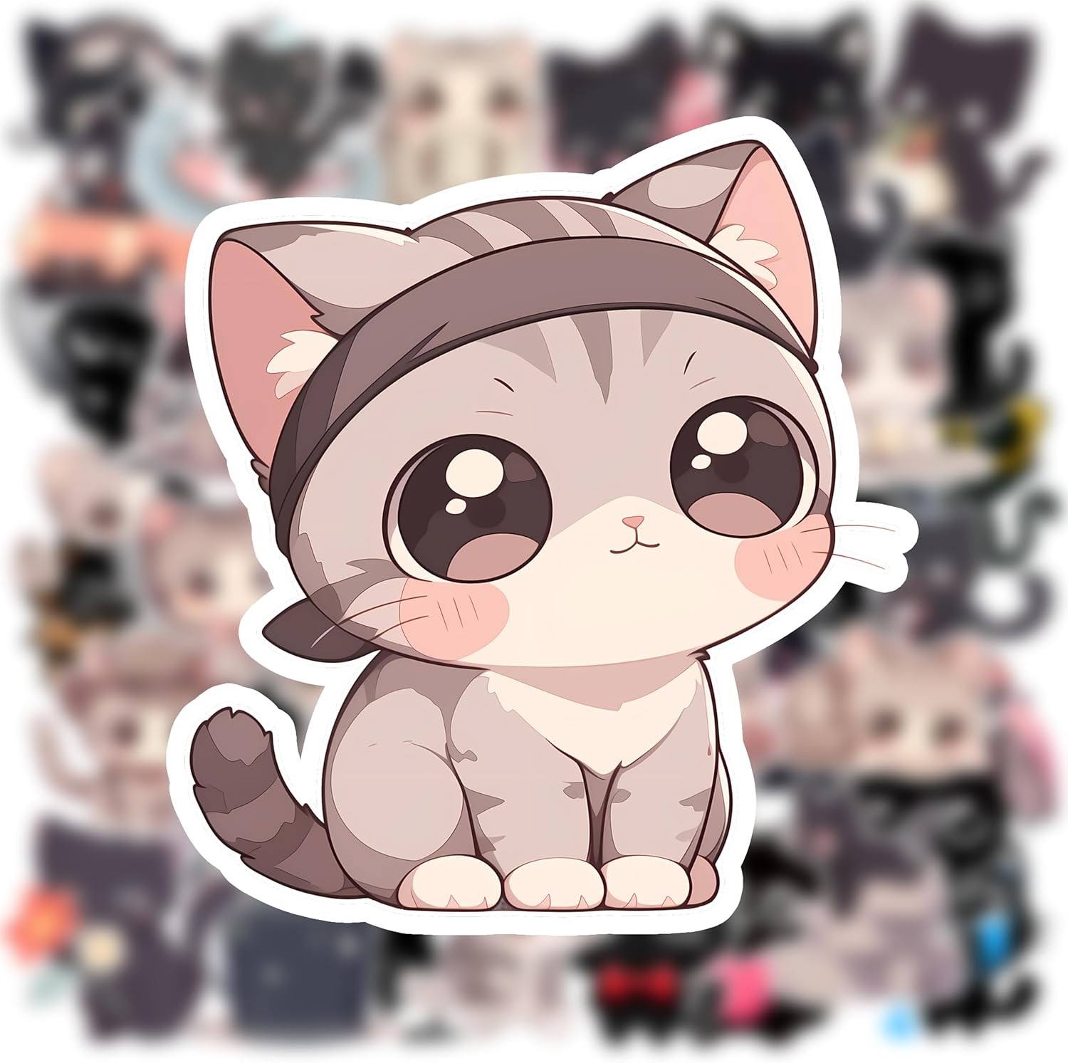 как выглядит 50PCS Cute Cat Stickers for Kids Girls Teen Adults, Kawaii Kitten Grey/Black фото