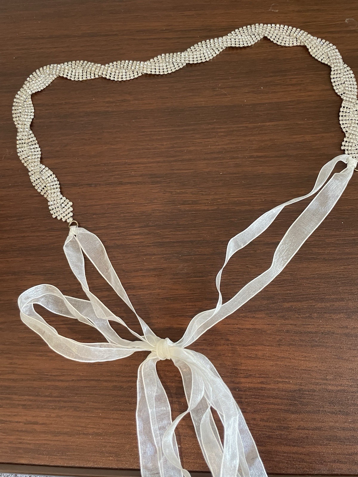 как выглядит Elegant Scalloped Crystal Waist Sash With Organza Ribbon Ties For Wedding/Prom фото