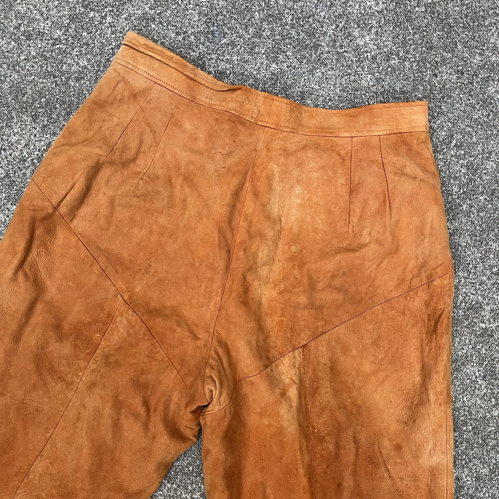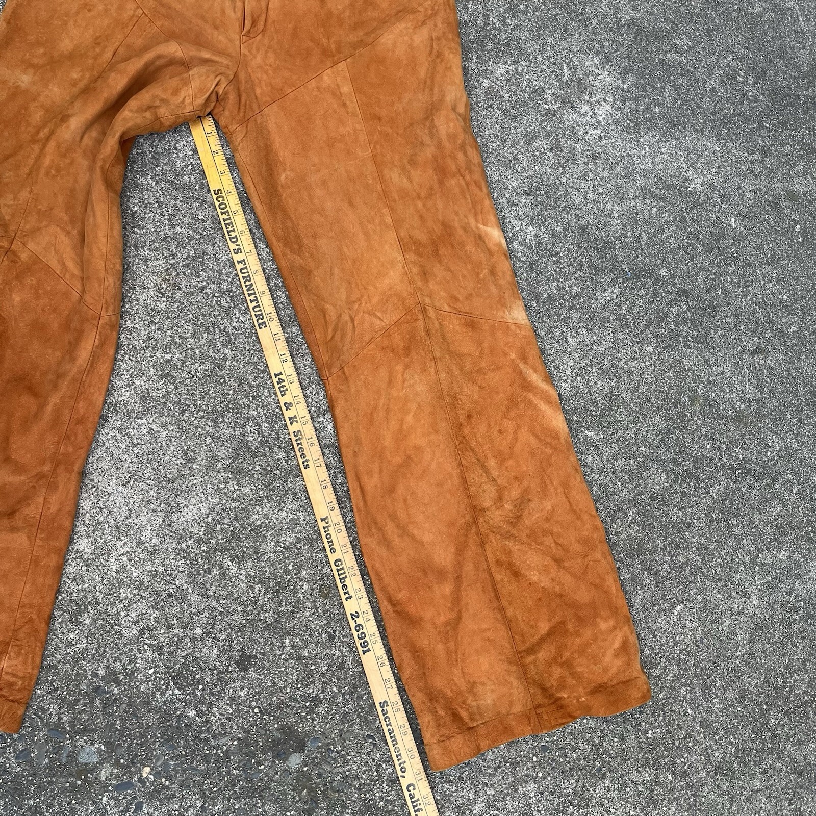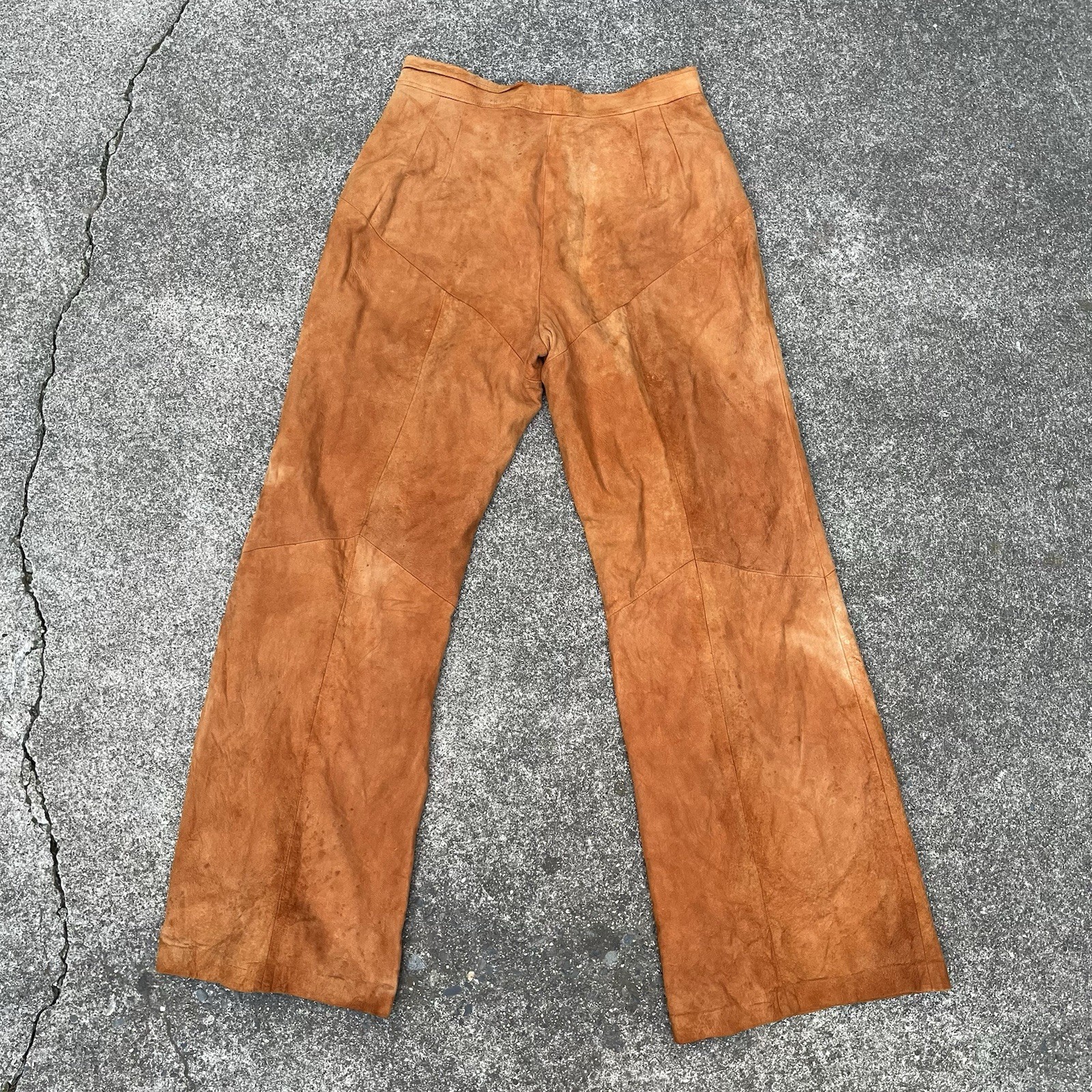 Vintage 70s Western Suede Leather Flare Pants 31x31 Orange Hippie Boho