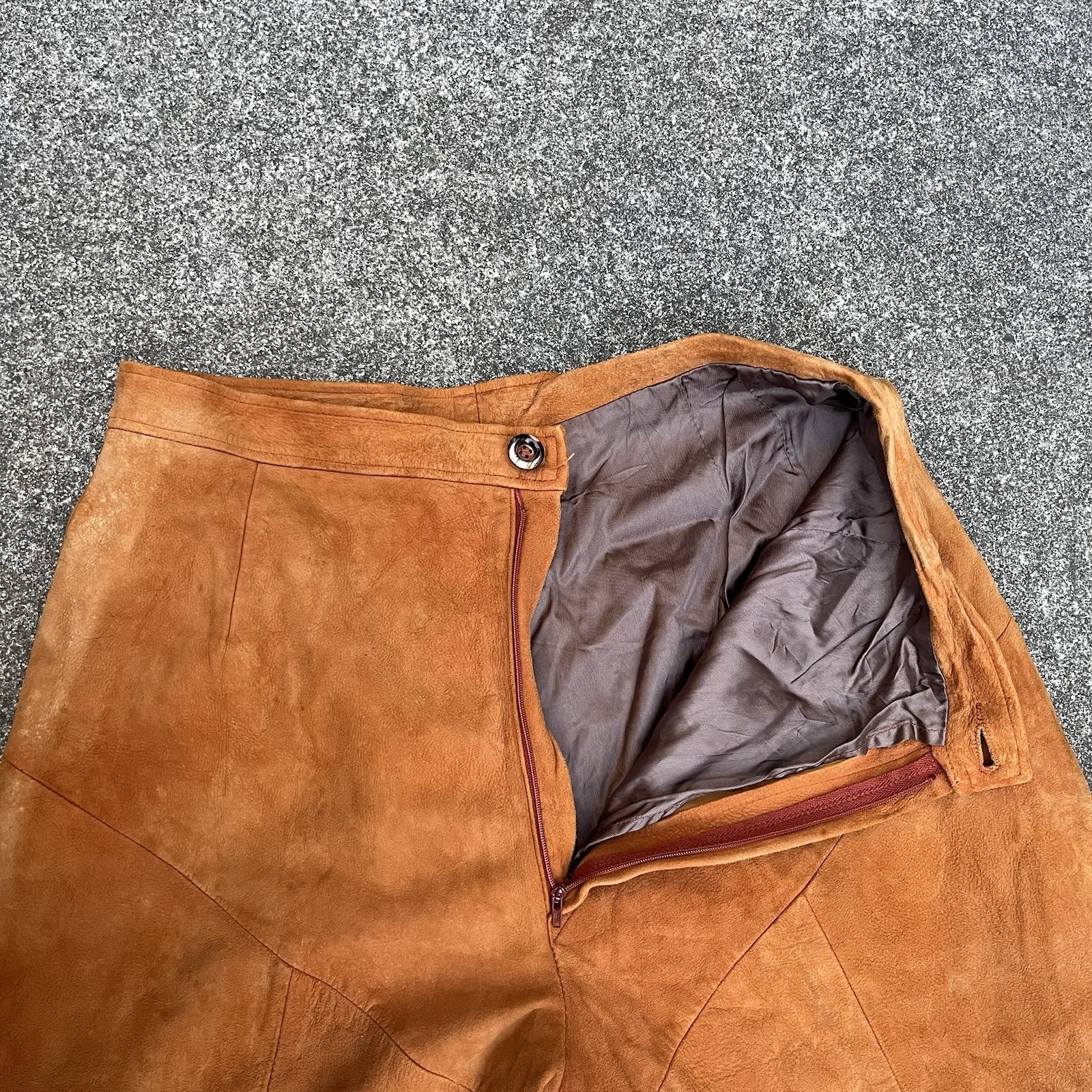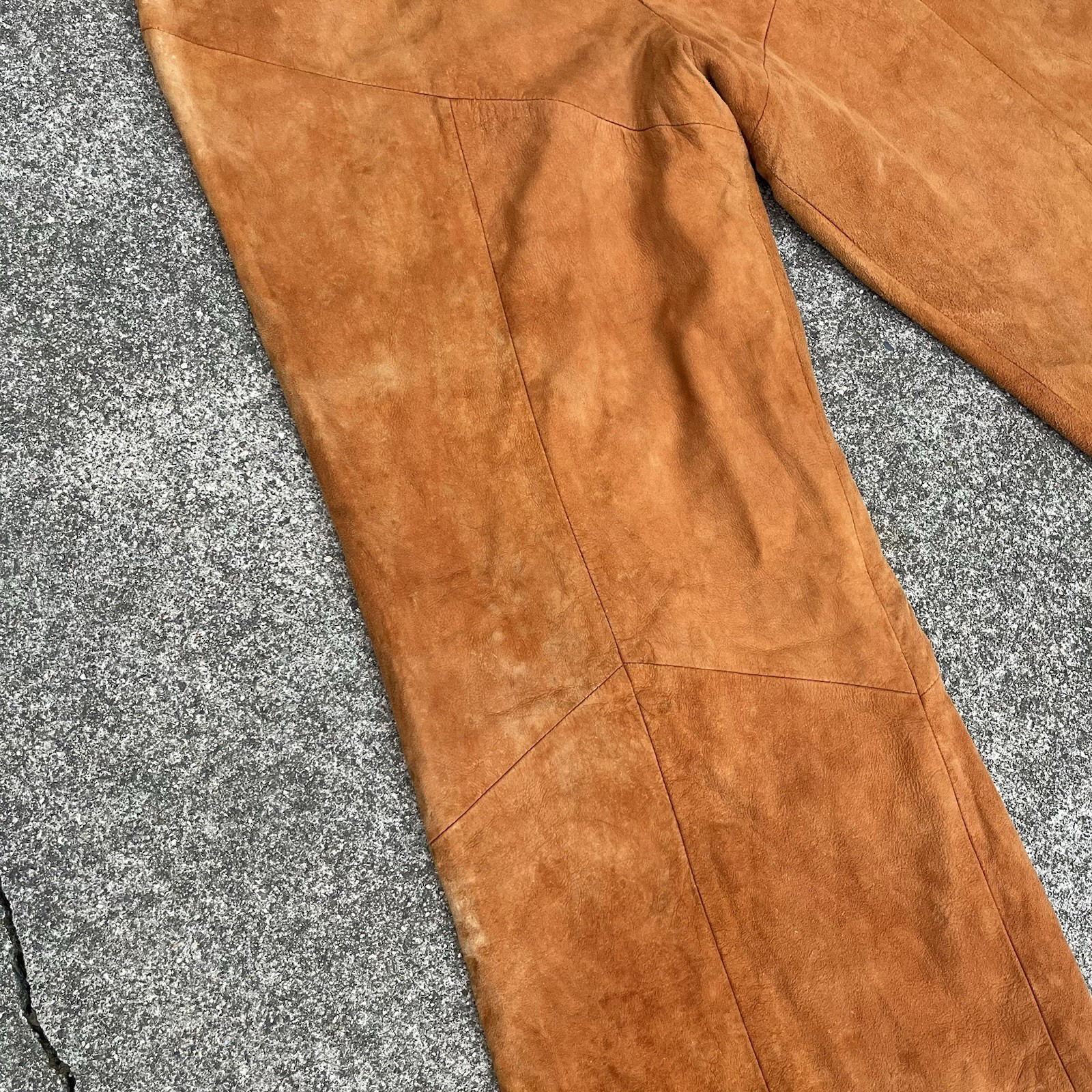 как выглядит Vintage 70s Western Suede Leather Flare Pants 31x31 Orange Hippie Boho фото