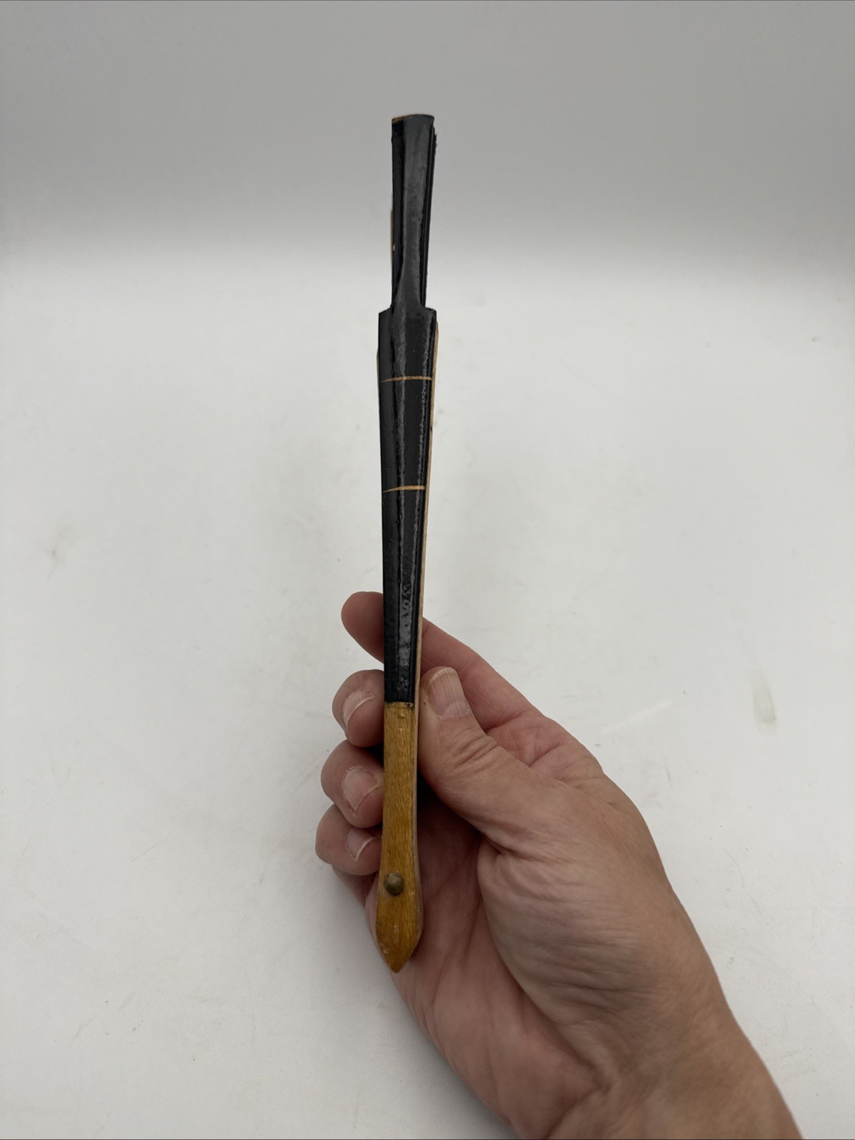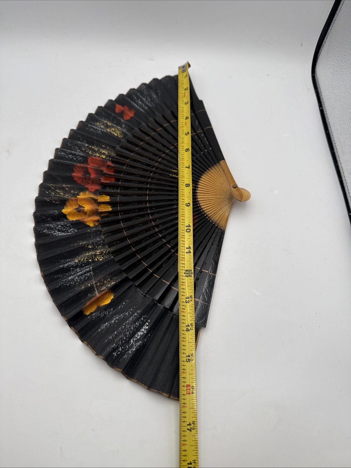 как выглядит Vintage Black Pleated Folding Fan - Painted Floral Fabric - Spain фото