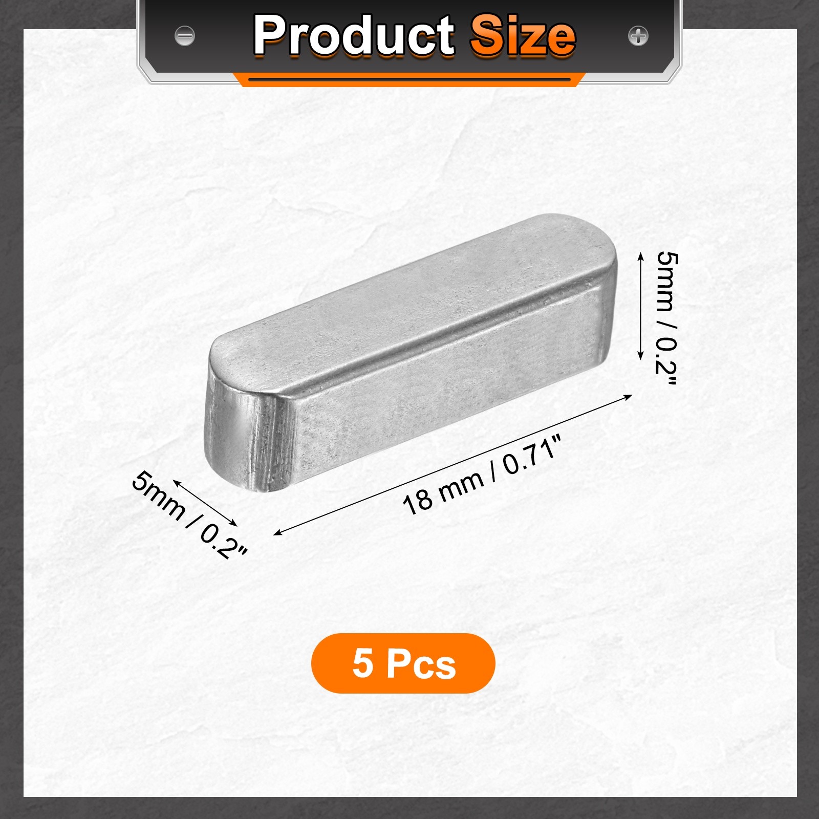5Pcs Round Ended Feather Key, 5x5x18mm Carbon Steel Parallel Drive Shaft Keys