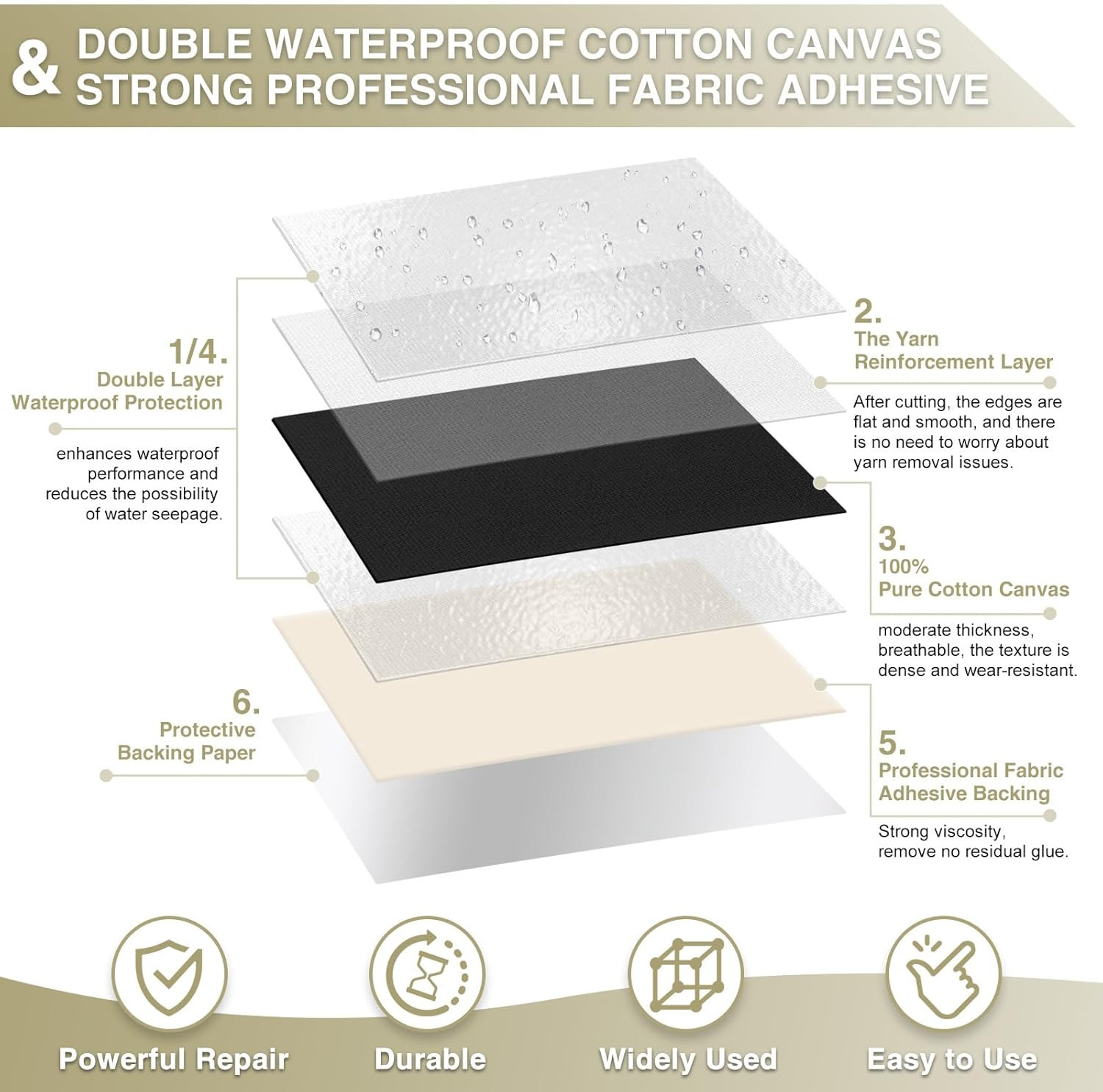 Canvas Repair Tape 4 70 Inch Waterproof Self-Adhesive Patch for Fabric Repairs