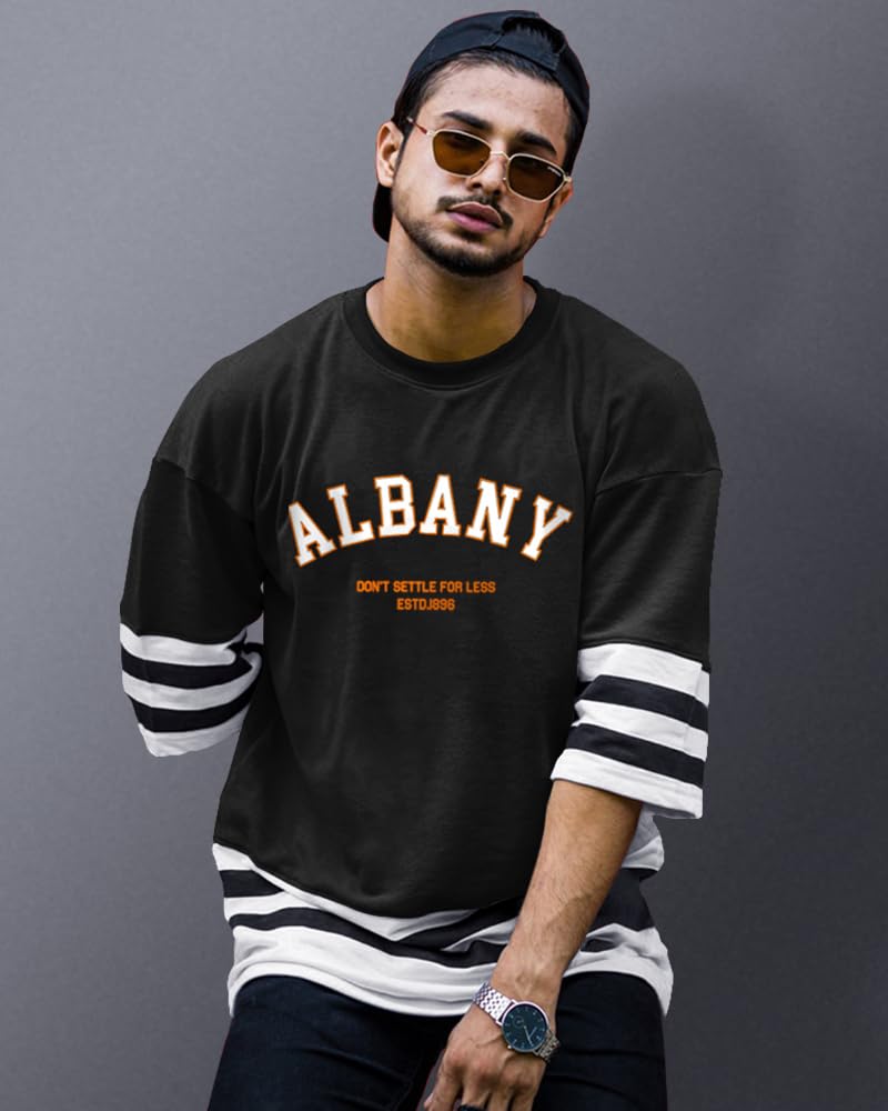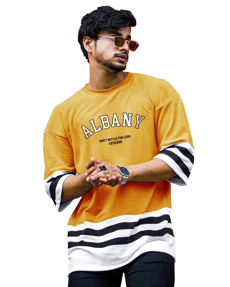 EYEBOGLER Oversized Loose Baggy Fit Drop Shooulder Half Sleeves Cotton Blend ...