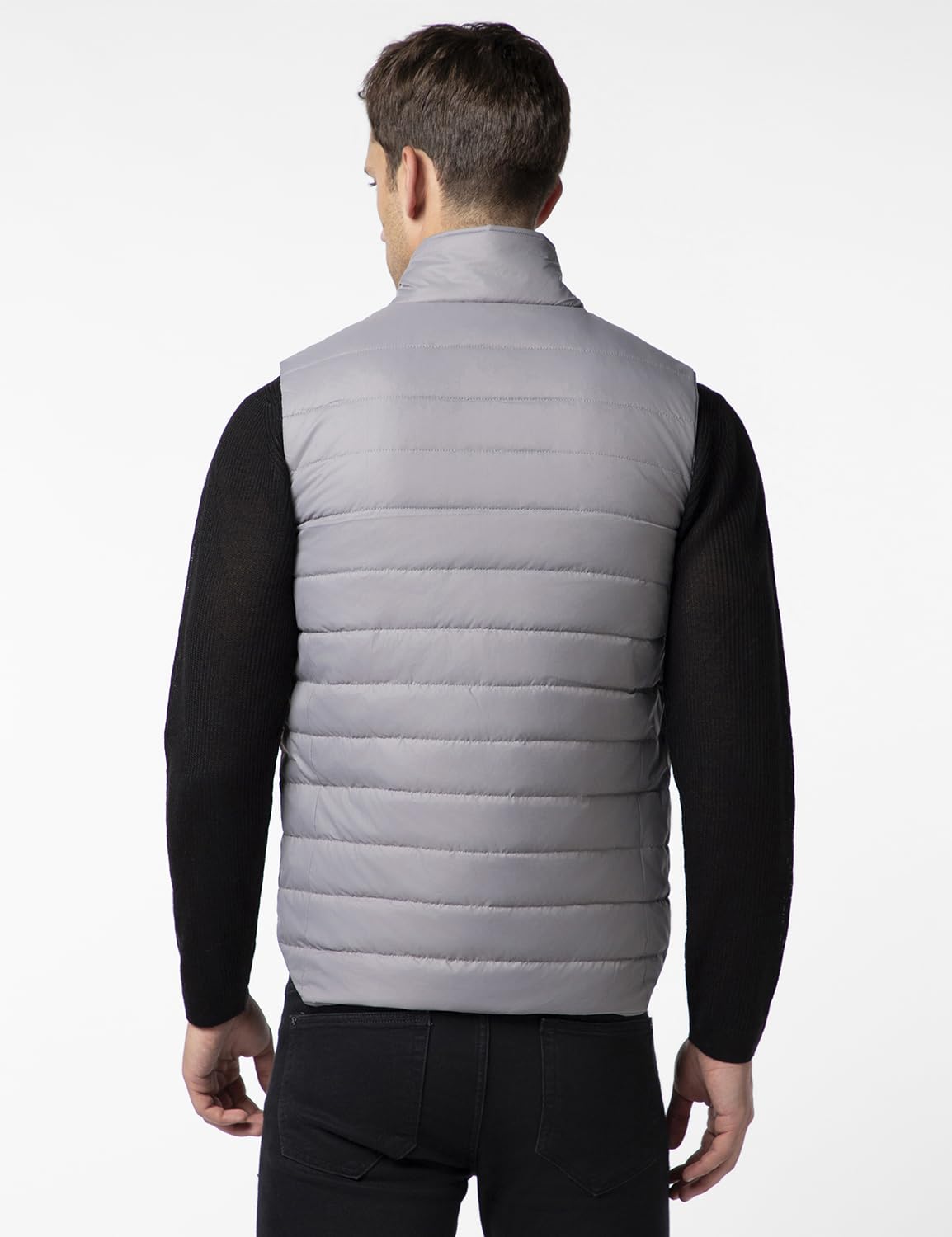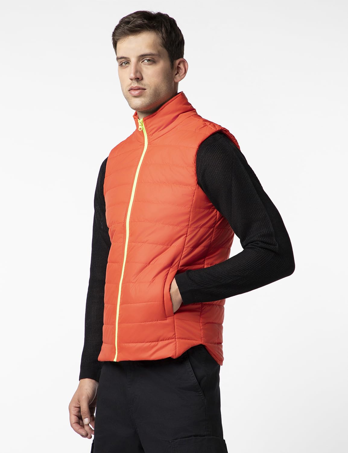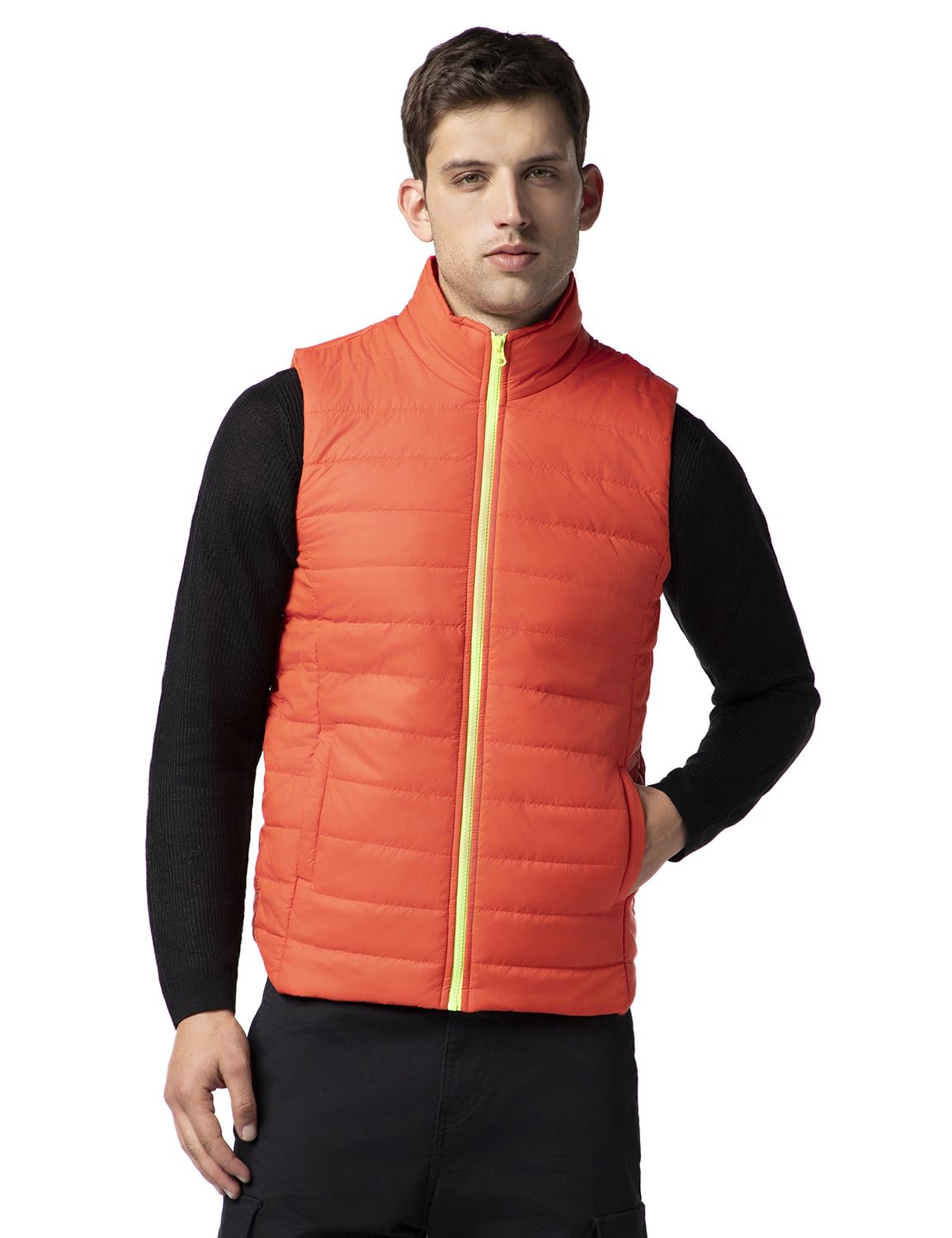 FYLTR Men's Sleeveless Puffer Jacket with Neon Trims - Stand Collar Full Zi...