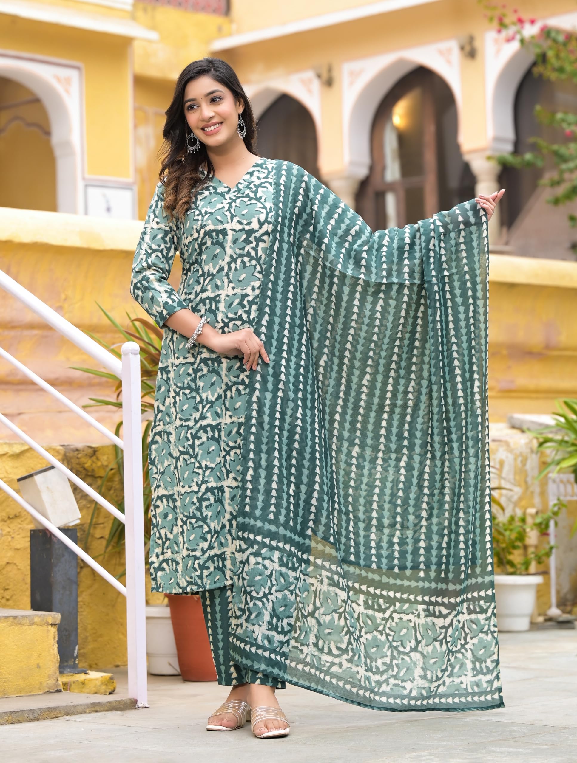 KLOSIA Women's Viscose Straight Block Printed Kurta And Pant Set With Dupatta...