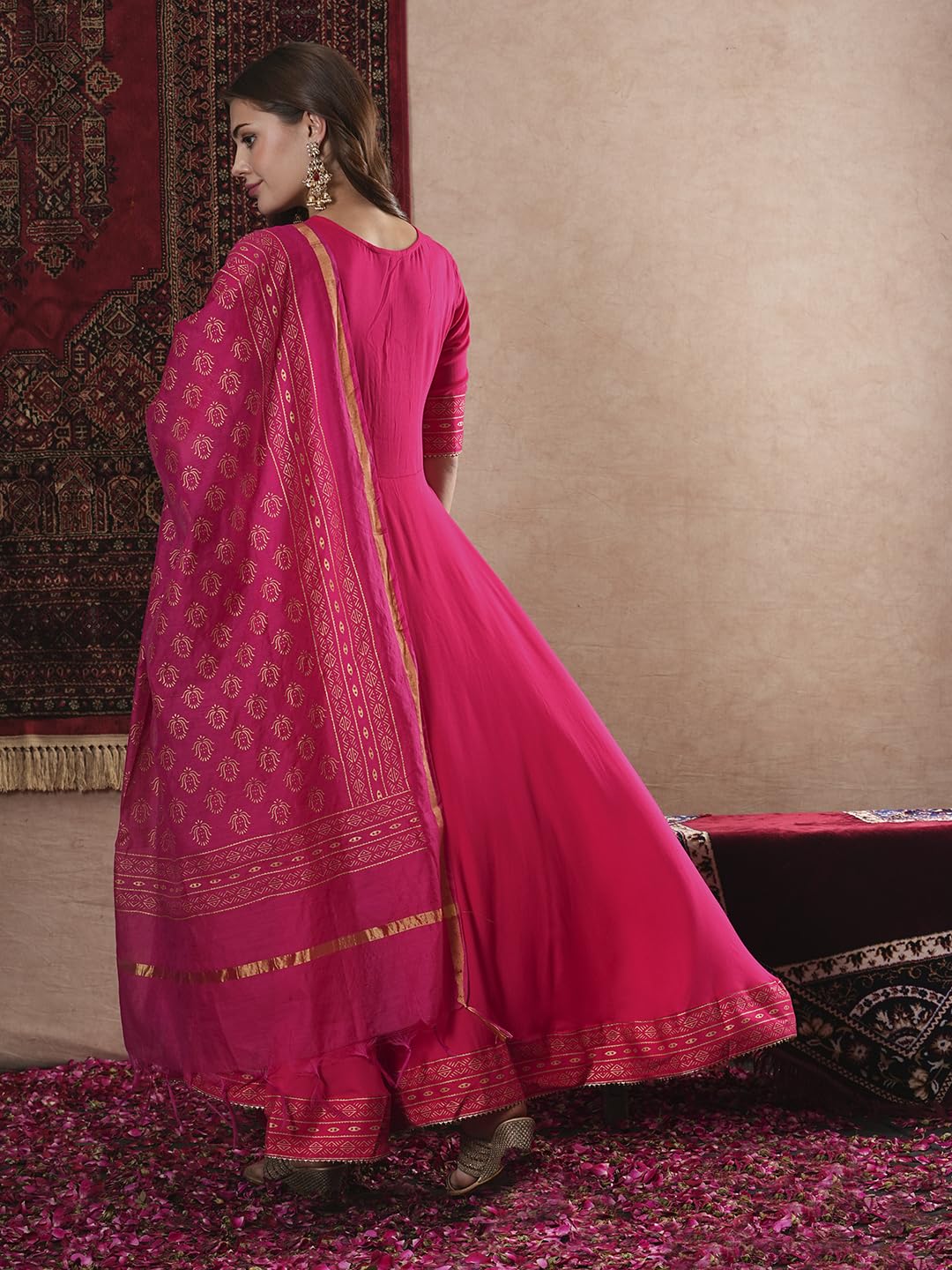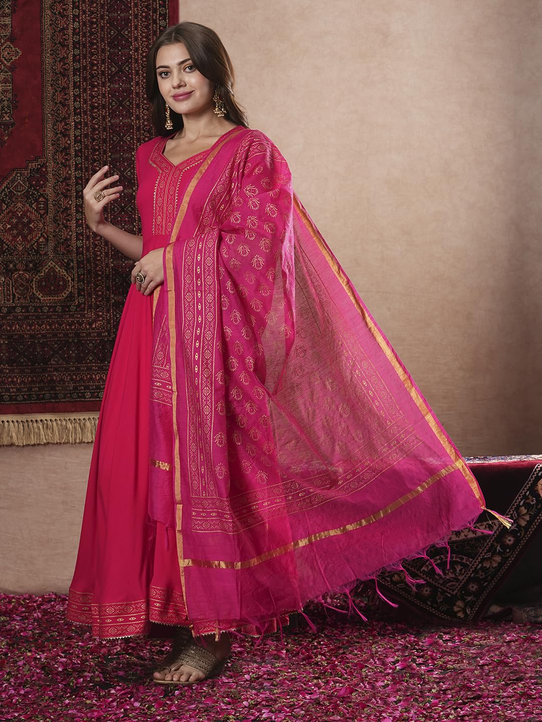 GoSriKi Women's Rayon Blend Anarkali Solid Kurta with Pant Dupatta