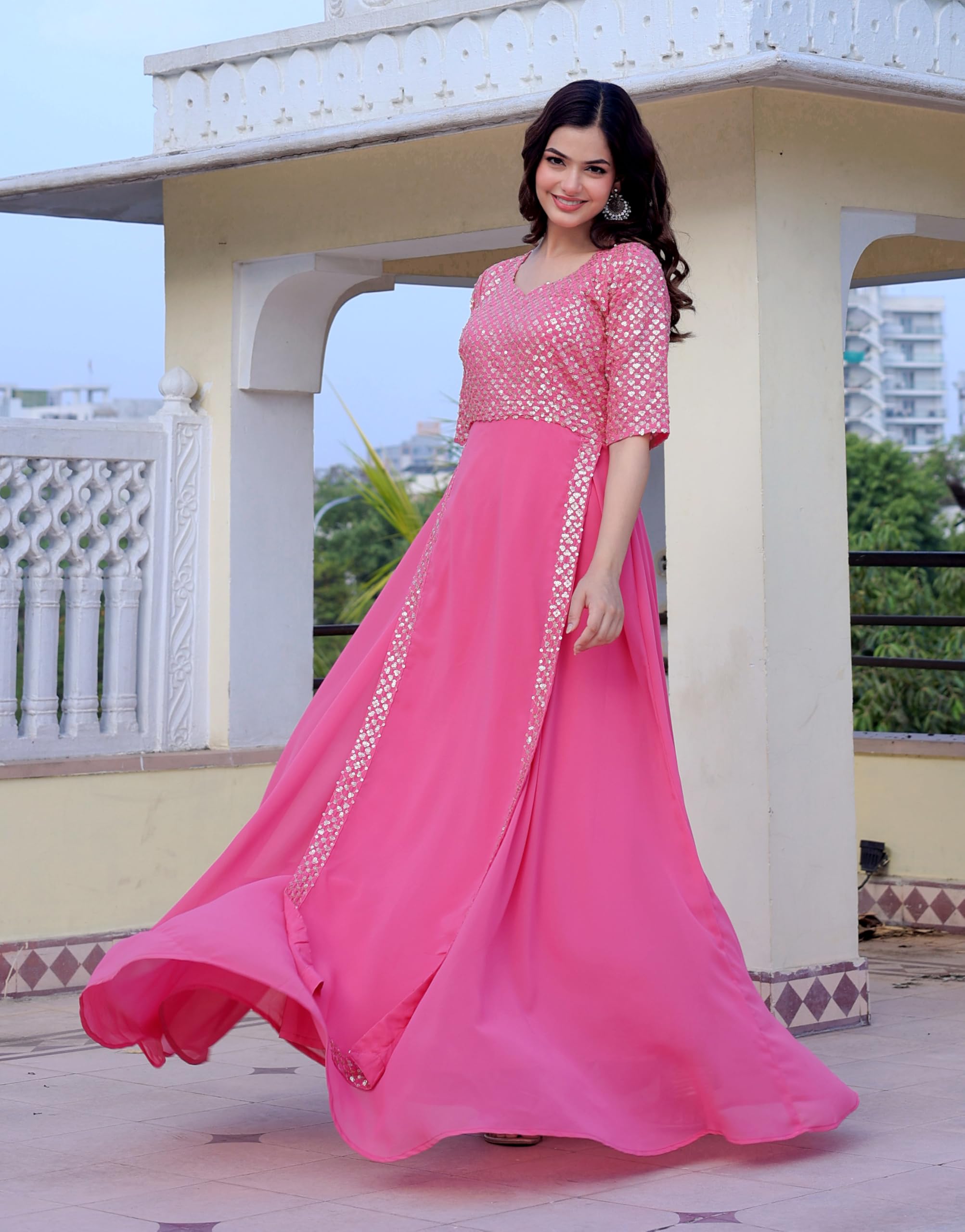 Wedani Faux Georgette Embroidery Sequins Work Anarkali Kurta Set for Women