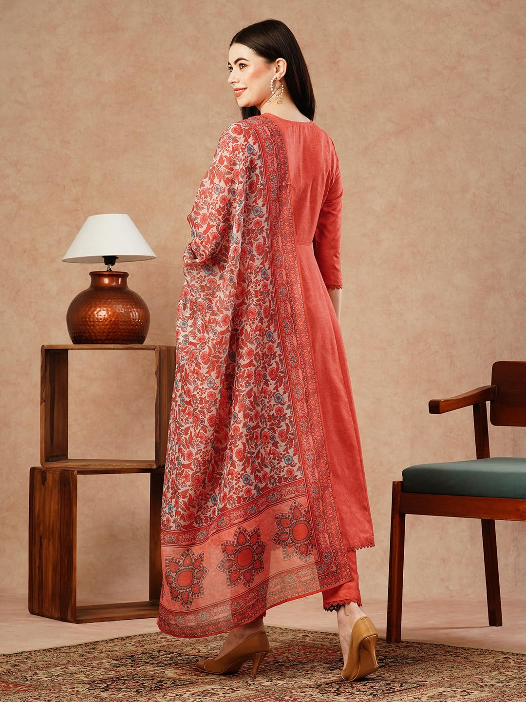 GoSriKi Women's Cotton Blend Anarkali Solid Kurta with Pant Dupatta