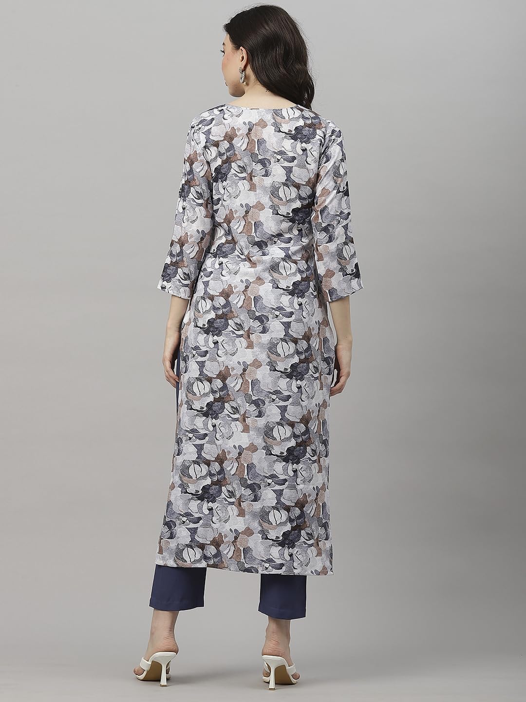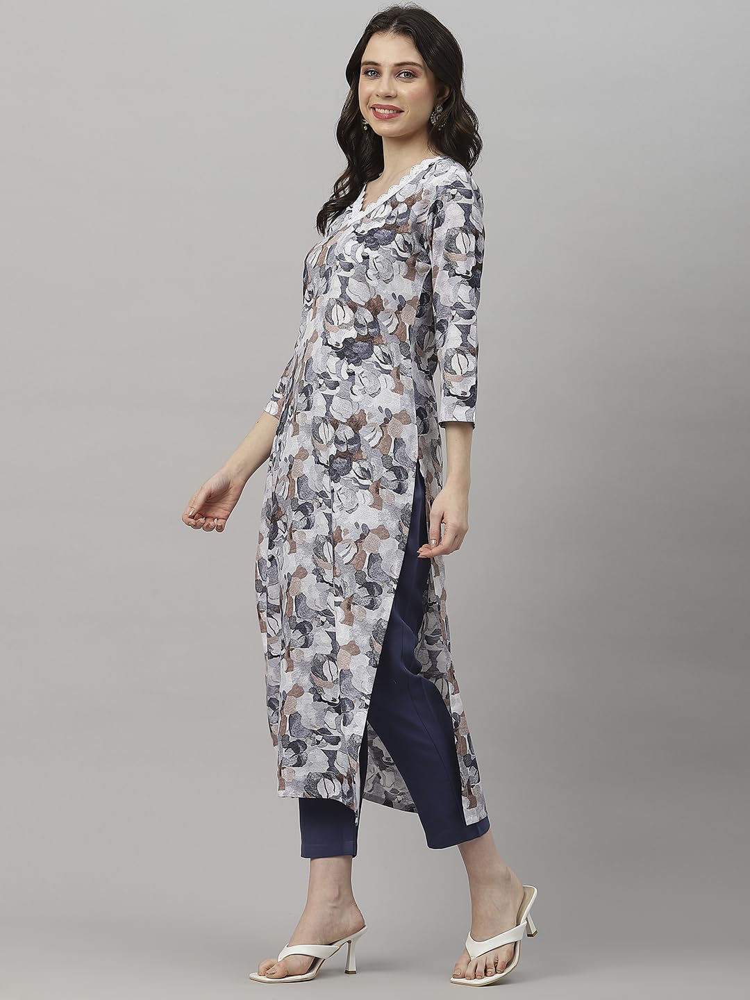 GoSriKi Women's Cotton Blend Straight Printed Kurta with Pant