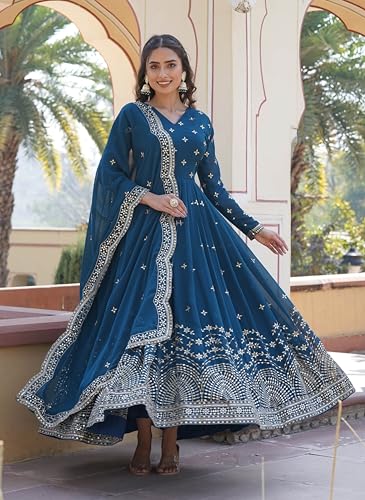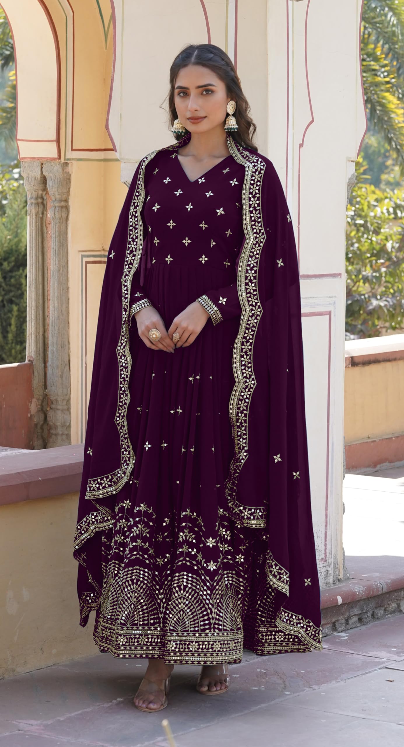 как выглядит Wedani Georgette Anarkali Kurta Set with Dupatta For women фото