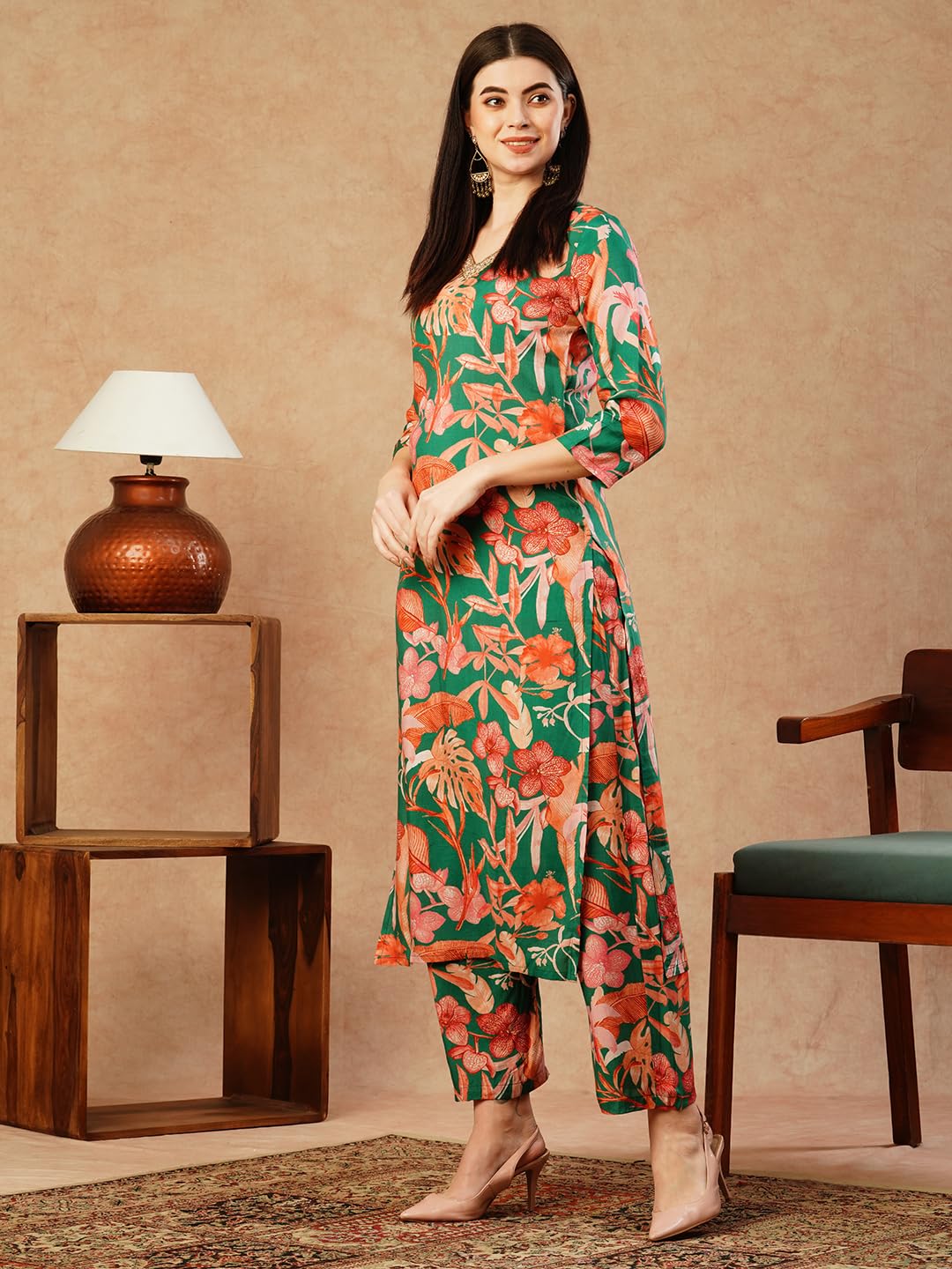 GoSriKi Women's Cotton Blend Straight Printed Kurta with Palazzo