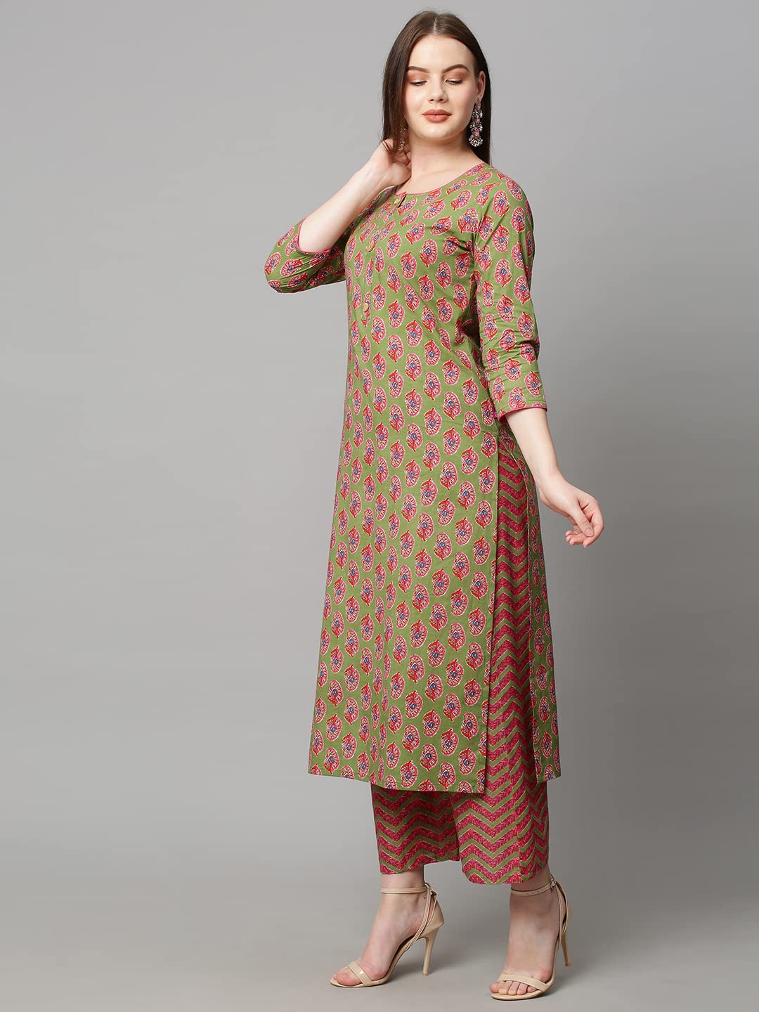 GoSriKi Women's Cotton Blend Traditional Straight Printed Kurta and Palazzo S...