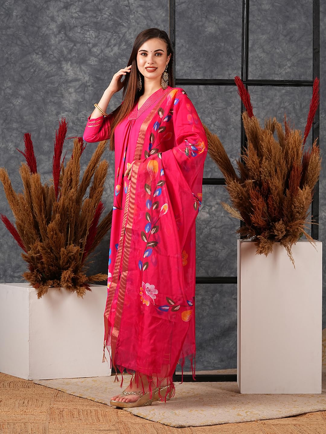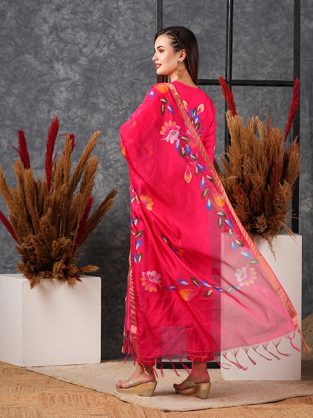 GoSriKi Women's Cotton Blend Straight Printed Kurta with Pant Dupatta