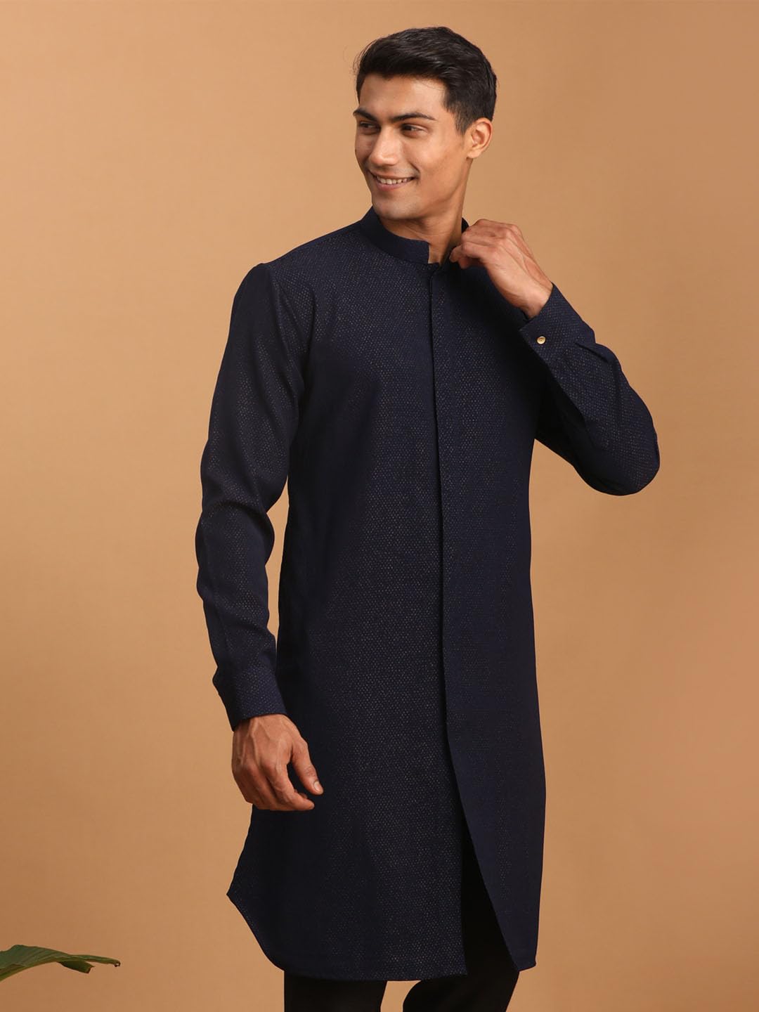 VASTRAMAY Men's Navy Blue Cotton Blend Kurta Imported Fabric Kurta for Men ...