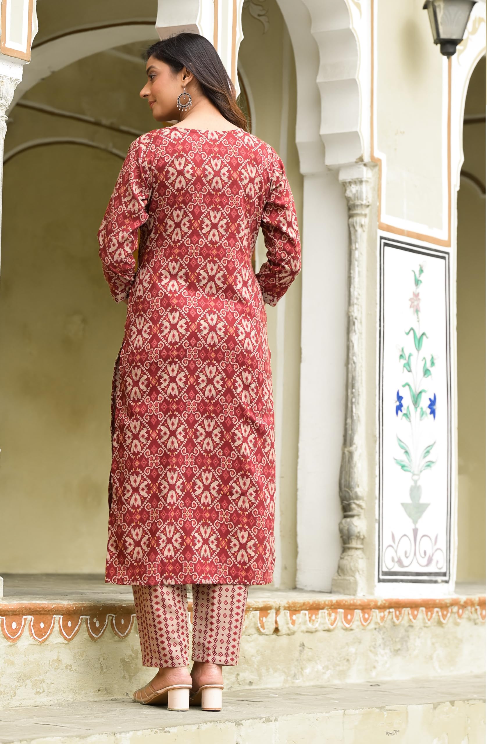 KLOSIA Women's Viscose Straight Block Printed Kurta And Pant Set With Dupatta...