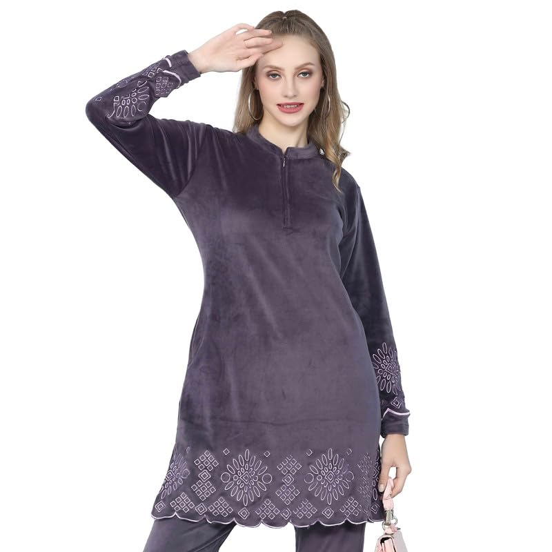 TRYLO Riza Women's Supersoft Velvet Fabric Full Sleeves Embroided Night Suit ...