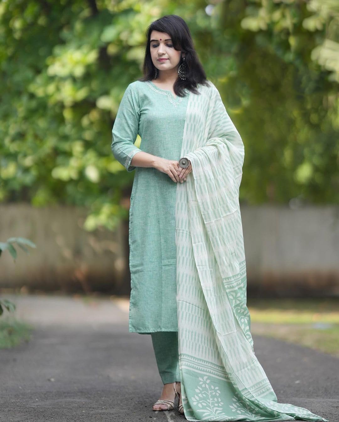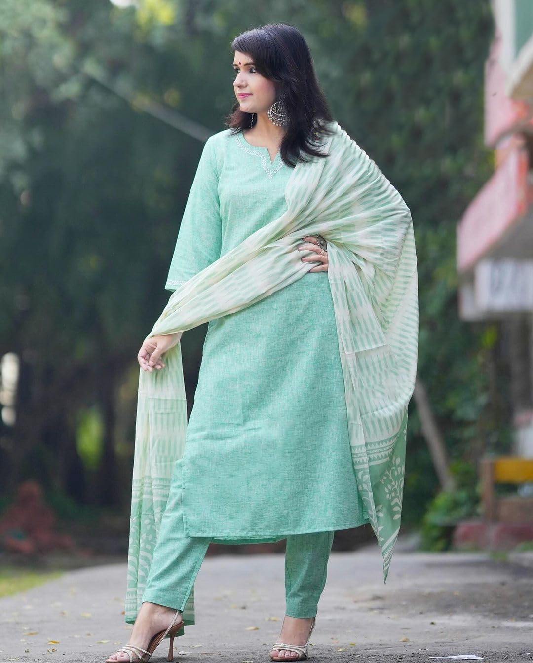 GoSriKi Women's Rayon Viscose Straight Solid Kurta with Pant Dupatta