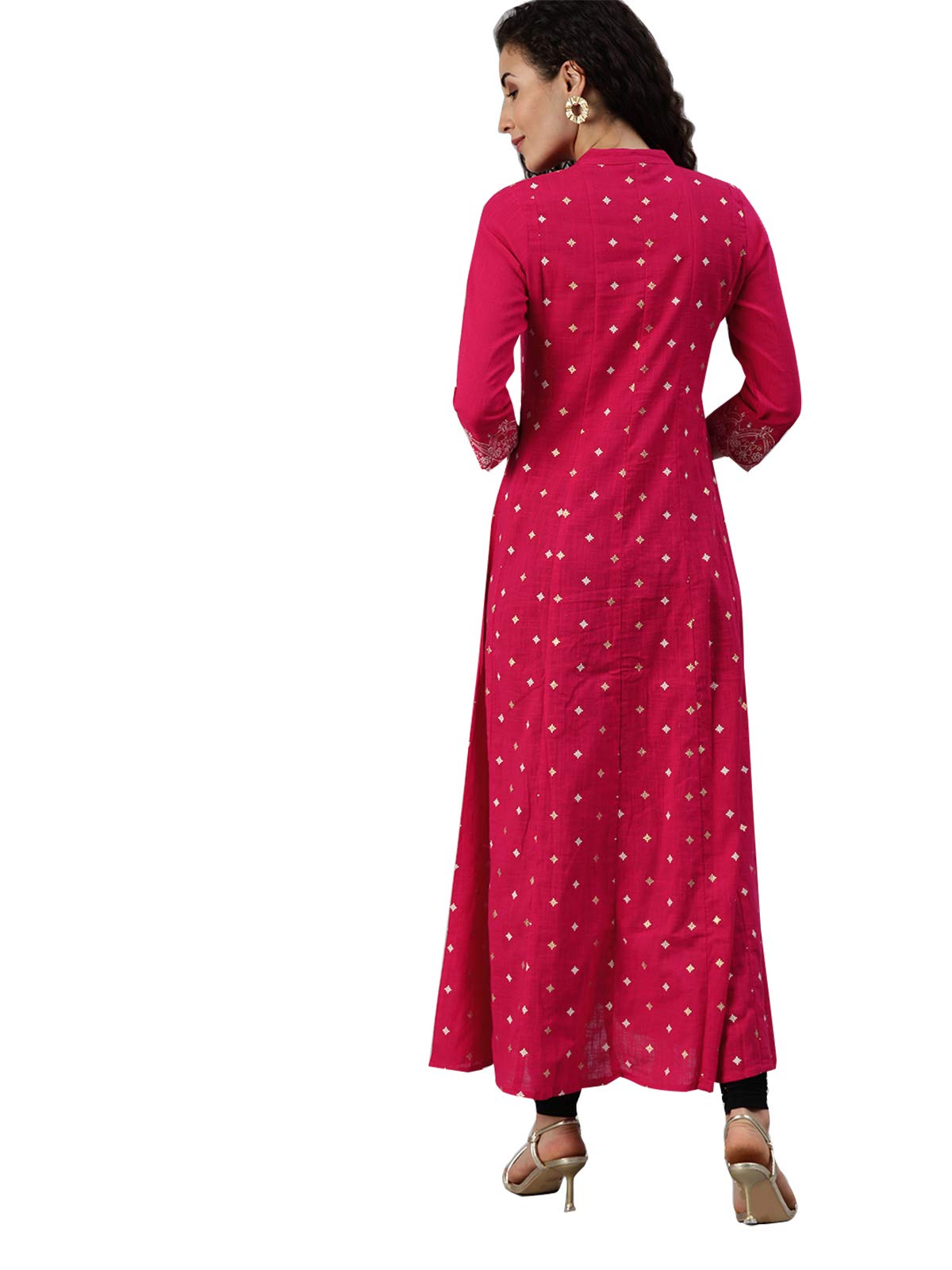 ishin Women's Cotton Regular Fit Anarkali Embellished Beads and Stones Floral...