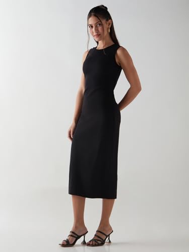 Bewakoof Women's Calf Length Solid Slim Fit Sleeveless Round Neck Cotton Blen...