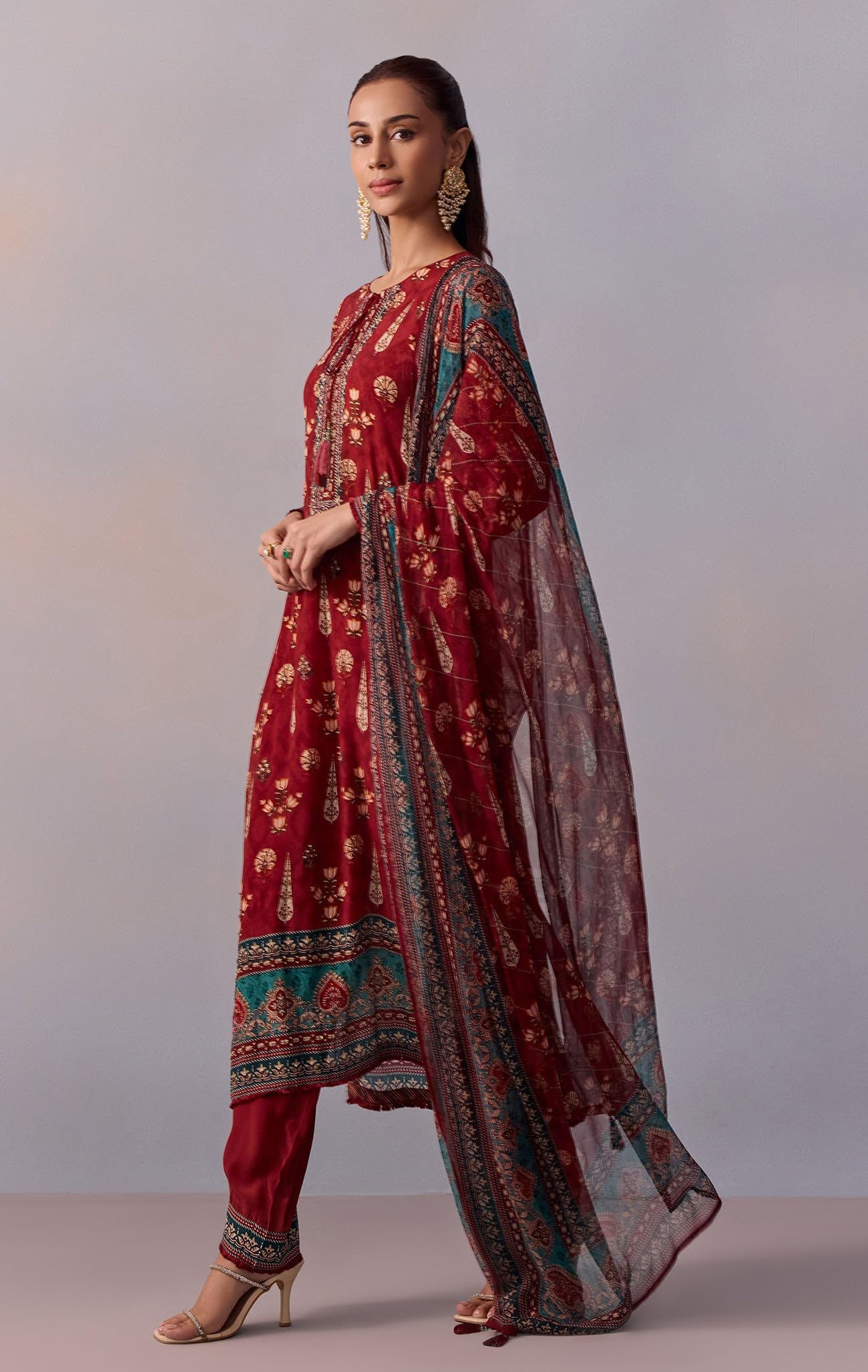 GoSriKi Women's Rayon Viscose Straight Printed Kurta with Pant Dupatta