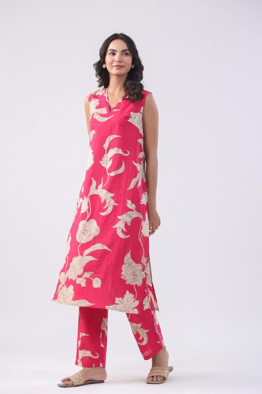 GoSriKi Women's Rayon Viscose Straight Printed Kurta with Pant