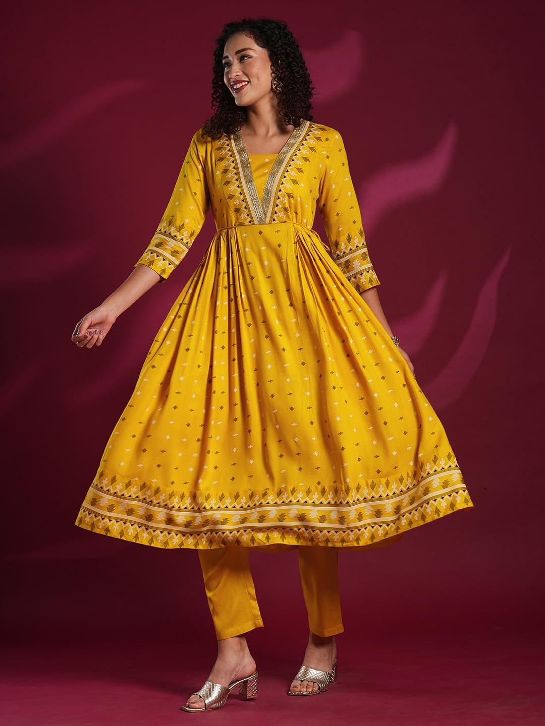 GoSriKi Women's Rayon Viscose Anarkali Printed Kurta with Pant