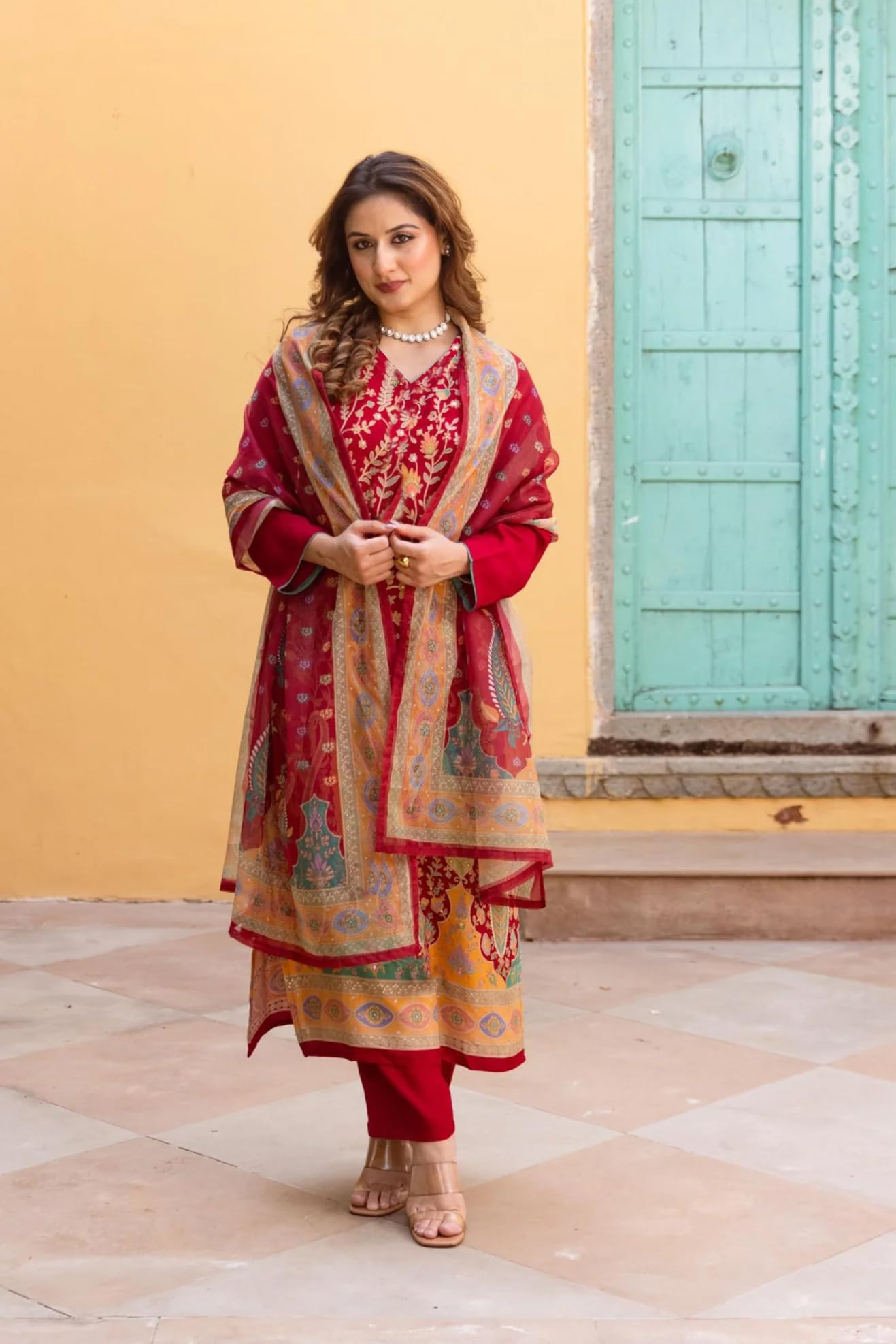 как выглядит GoSriKi Womens Rayon Viscose Straight Printed Kurta with Pant Dupatta фото