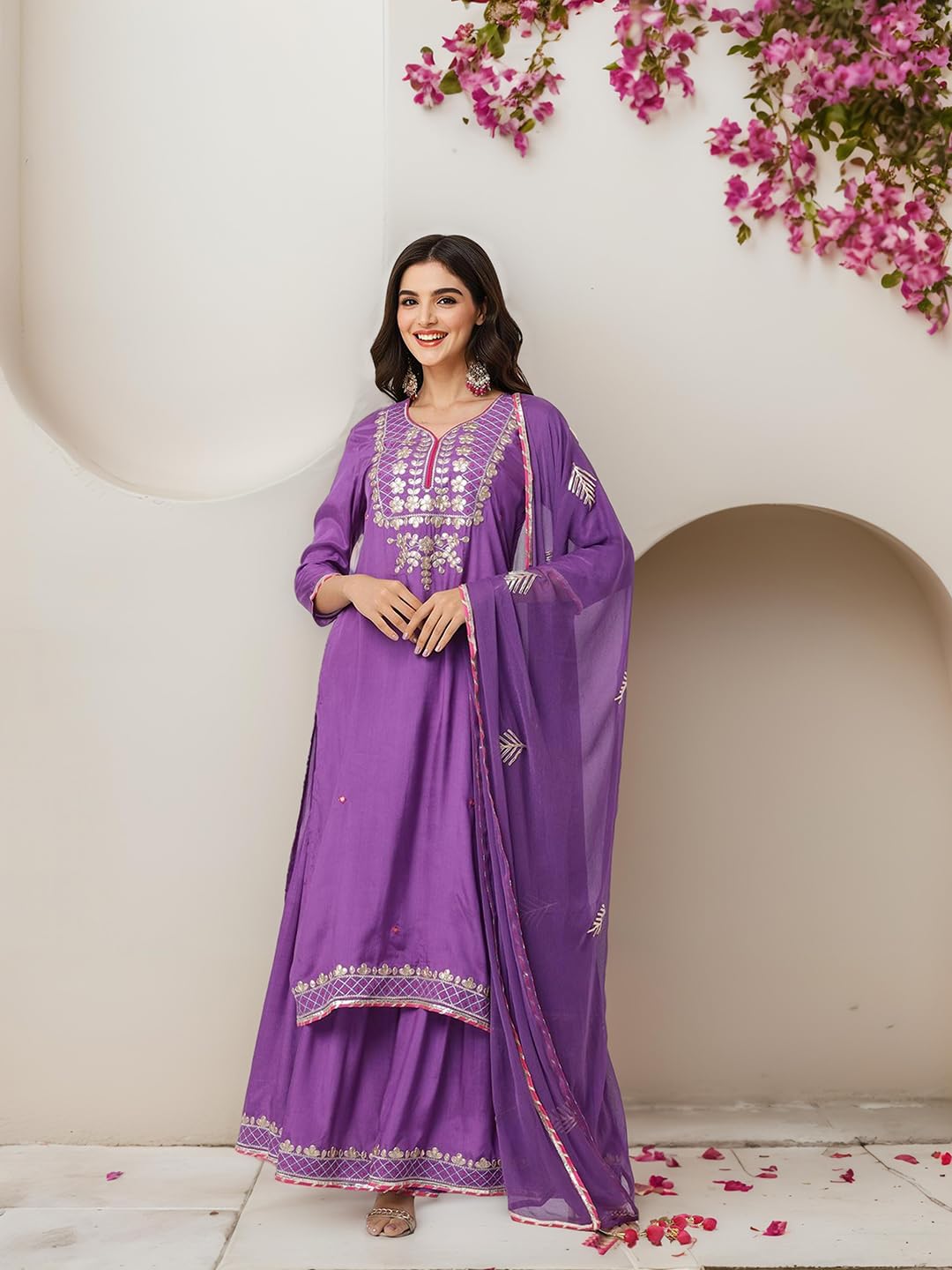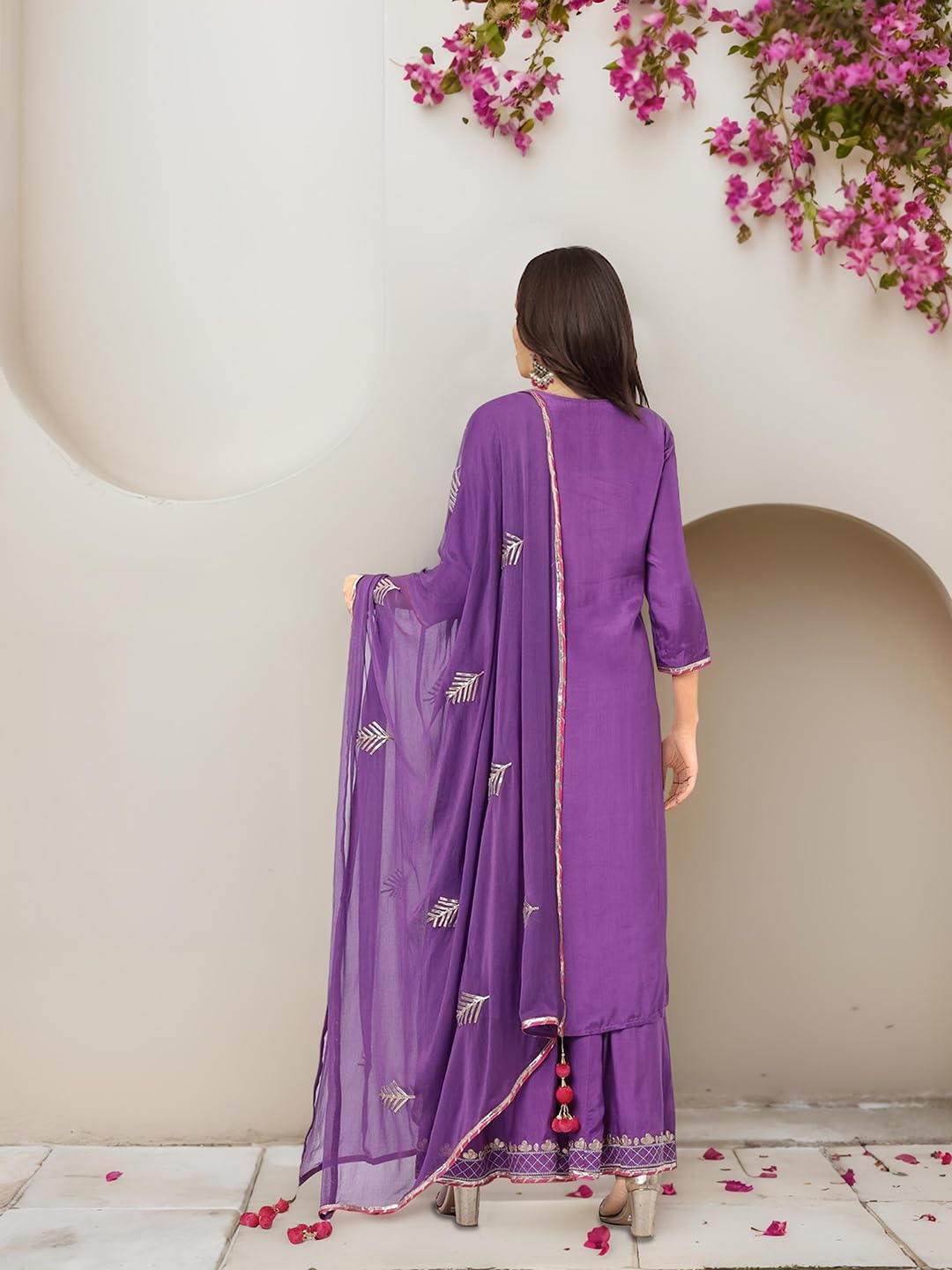 ishin Purple gotta patti detail straight kurta with sharara and dupatta