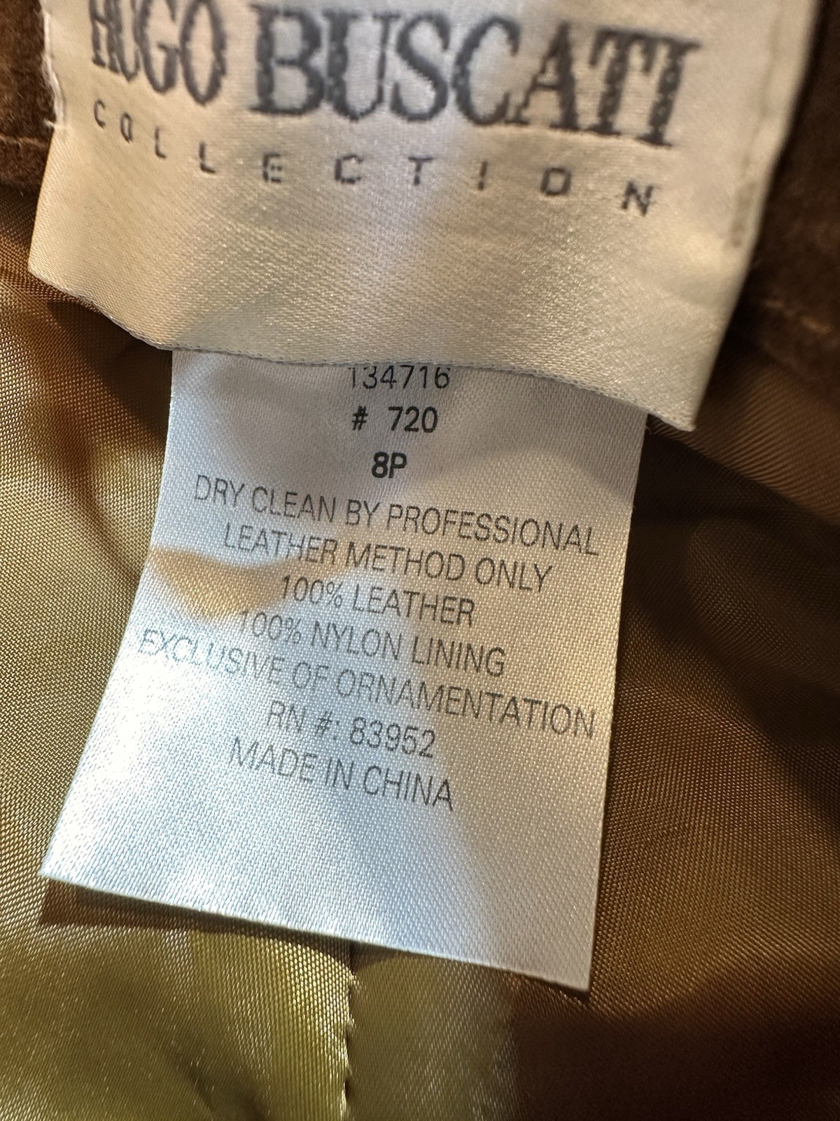 Garment Care: Professional Leather Cleaner Only