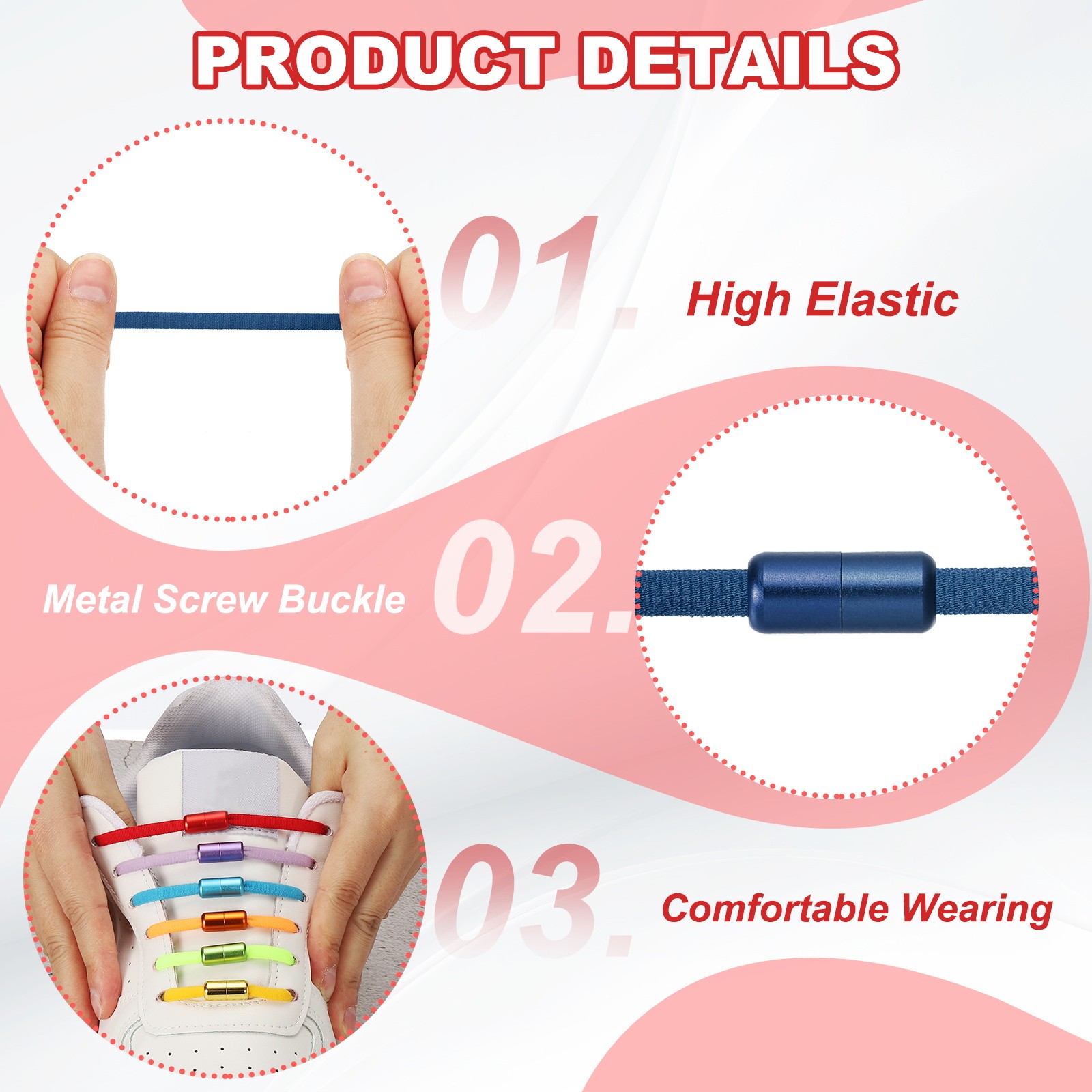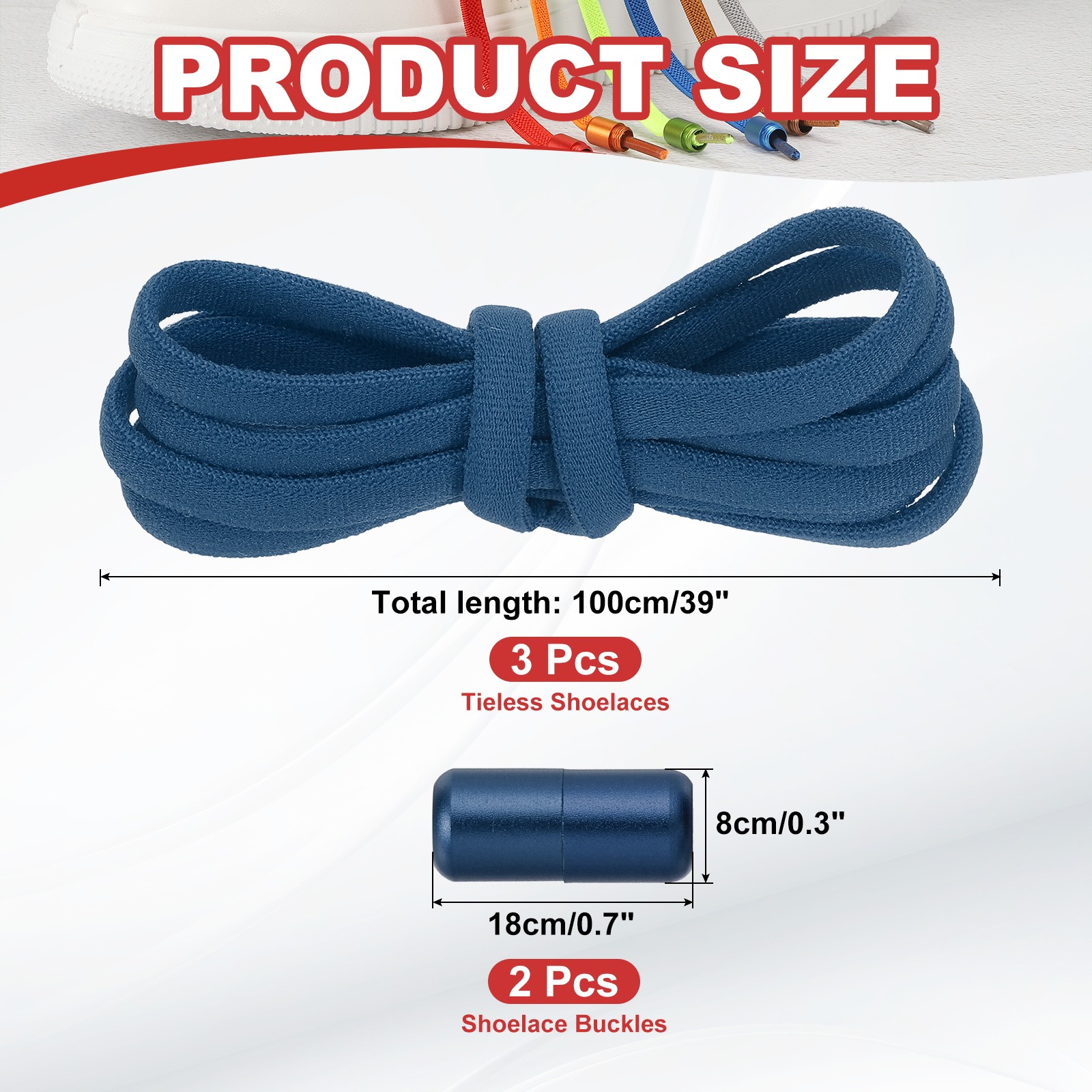 как выглядит Elastic No Tie Shoelaces Replacement 3Pcs with 2 Metal Buckles, Dark Blue фото