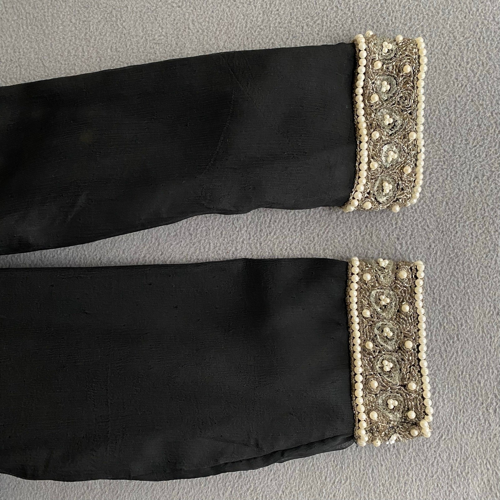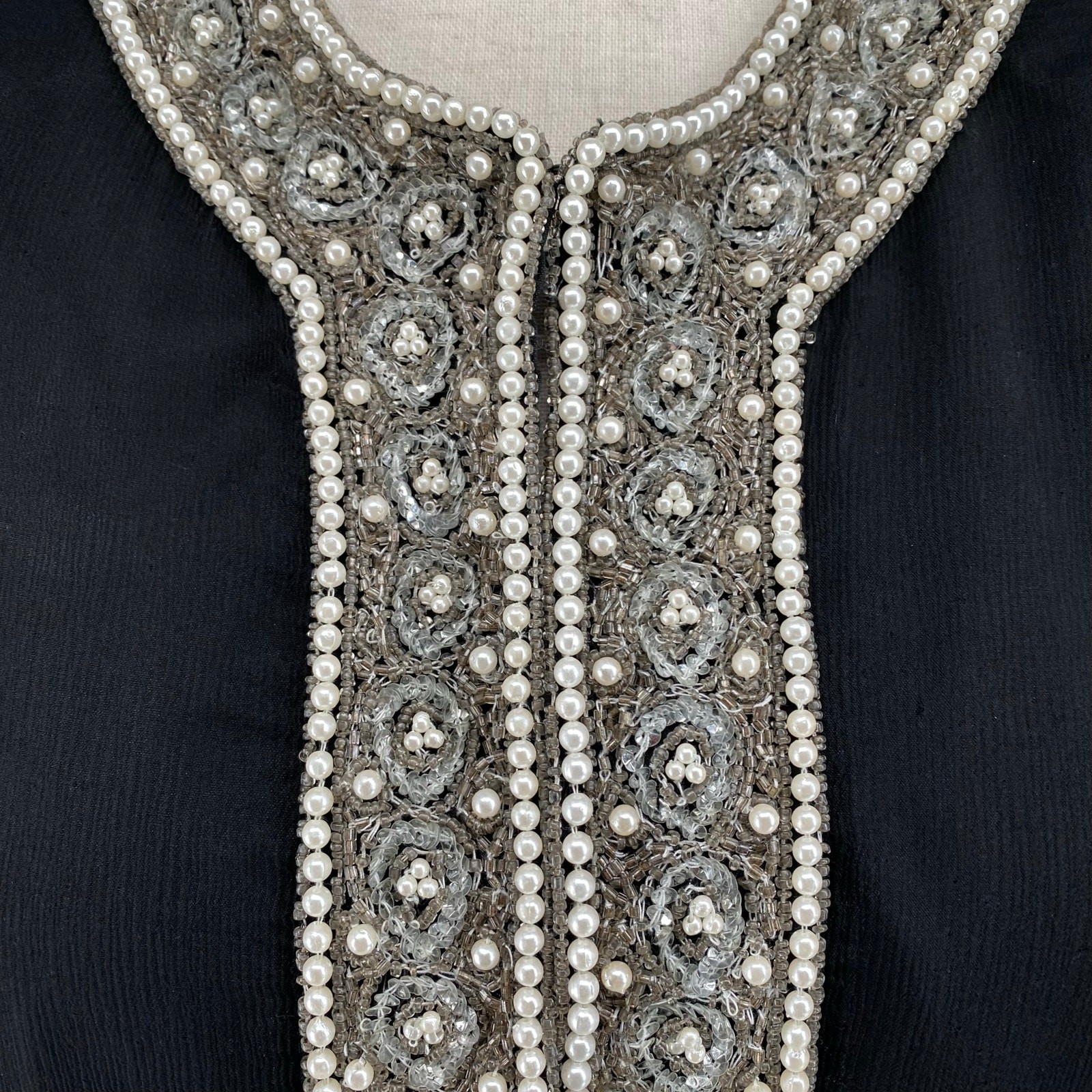 Vintage Lawrence Kazar Silk Beaded Long Sleeve Jacket Womens S Black Evening