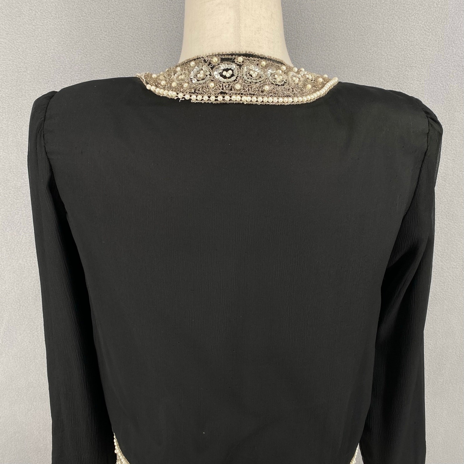 как выглядит Vintage Lawrence Kazar Silk Beaded Long Sleeve Jacket Womens S Black Evening фото