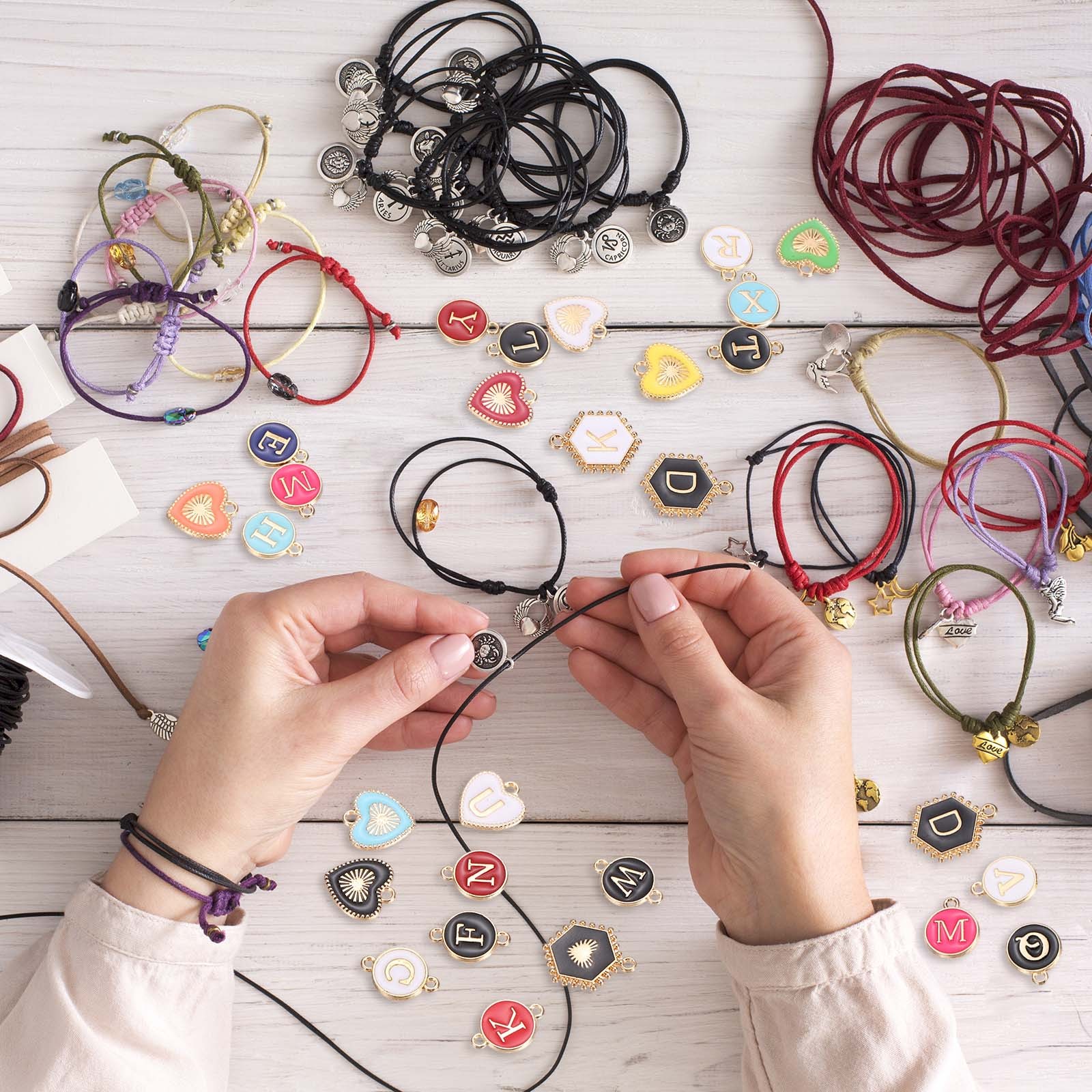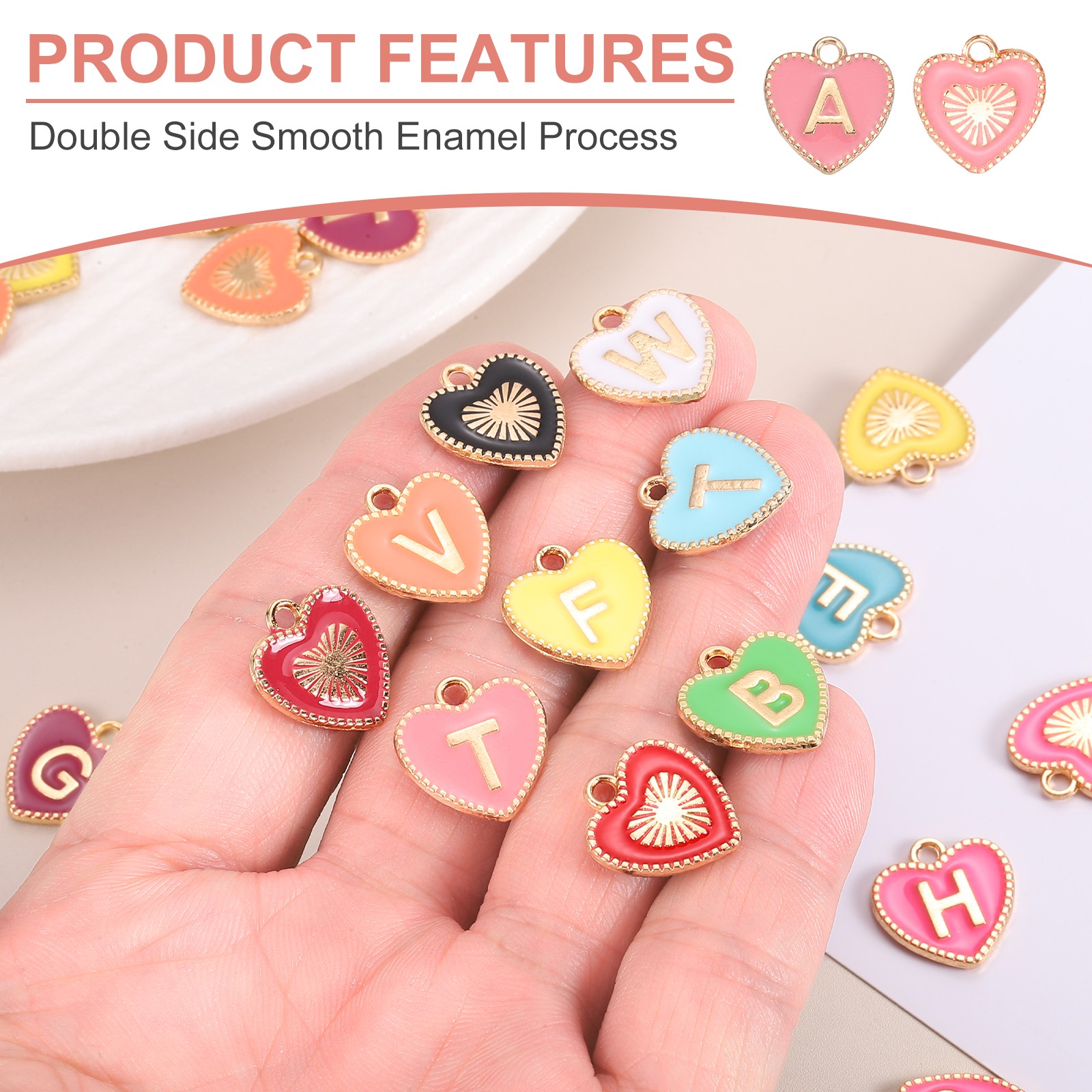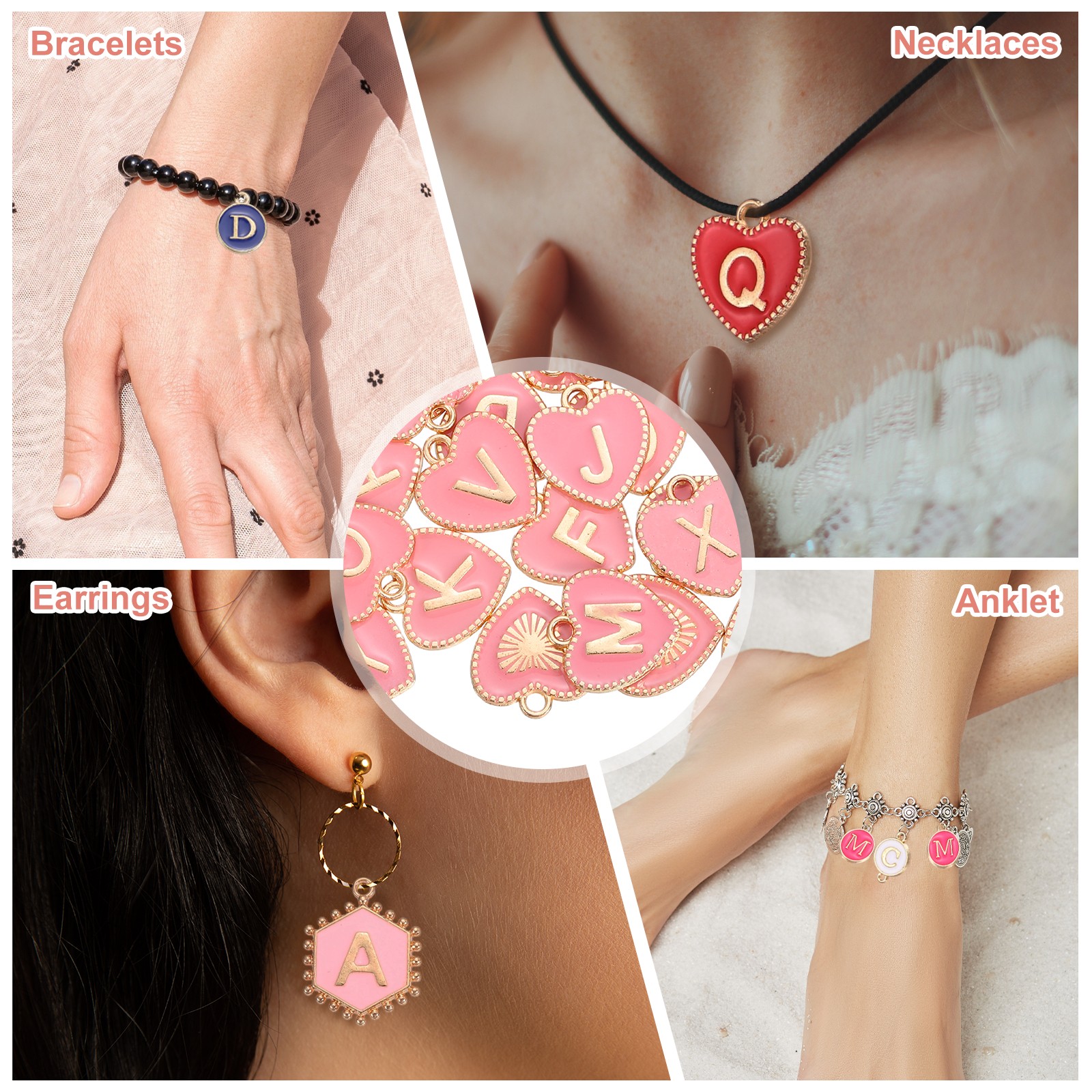 52 Pcs Letter Initial Charm A-Z Heart Letter Charm Pink