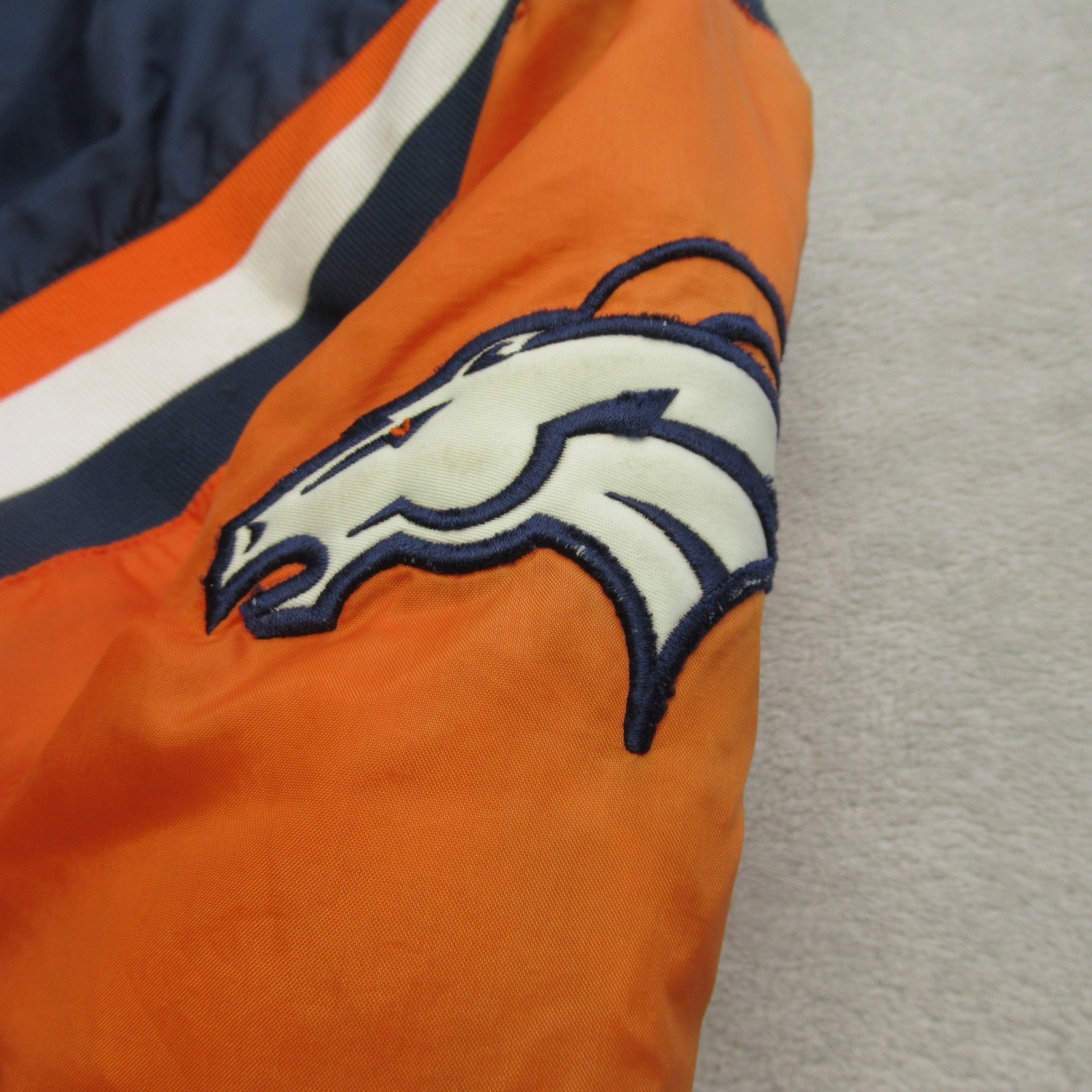 как выглядит Denver Broncos Jacket Boys Medium 10-12 NFL Blue Insulated Hooded Full Zip READ фото