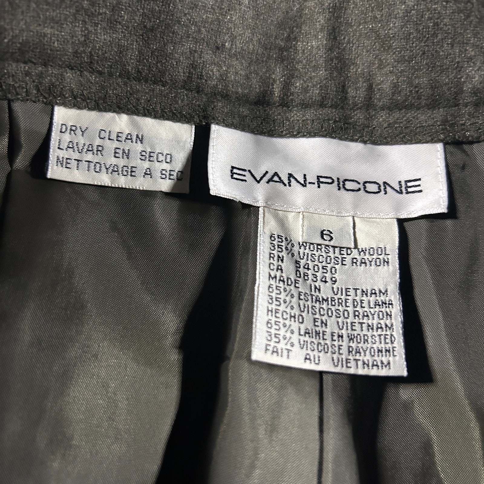 Vintage EVAN PICONE Gray Wool Blend Wide Leg Trouser Pants WorkWear NWT Sz 6