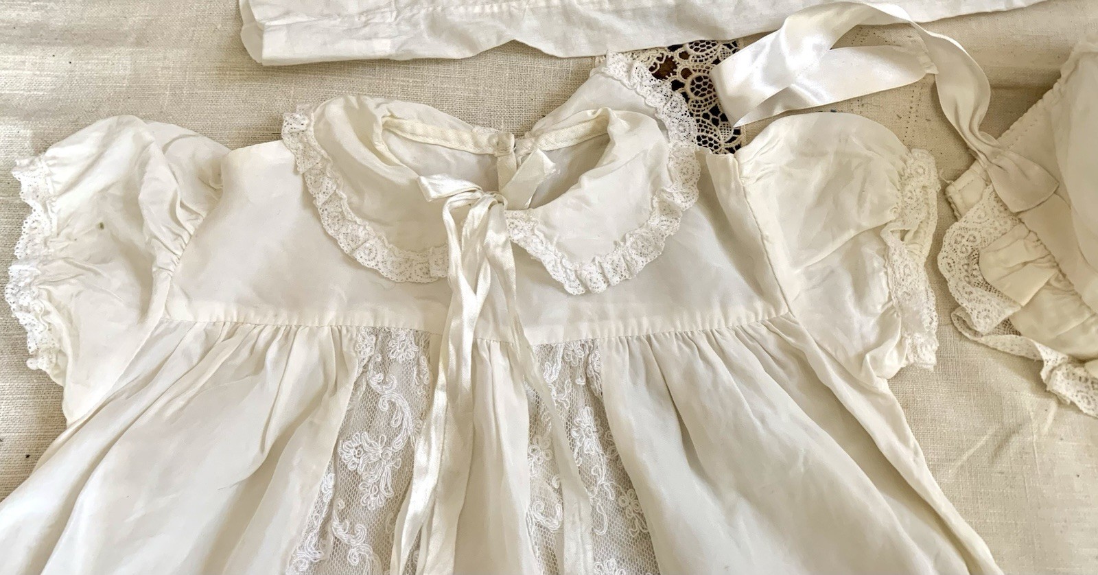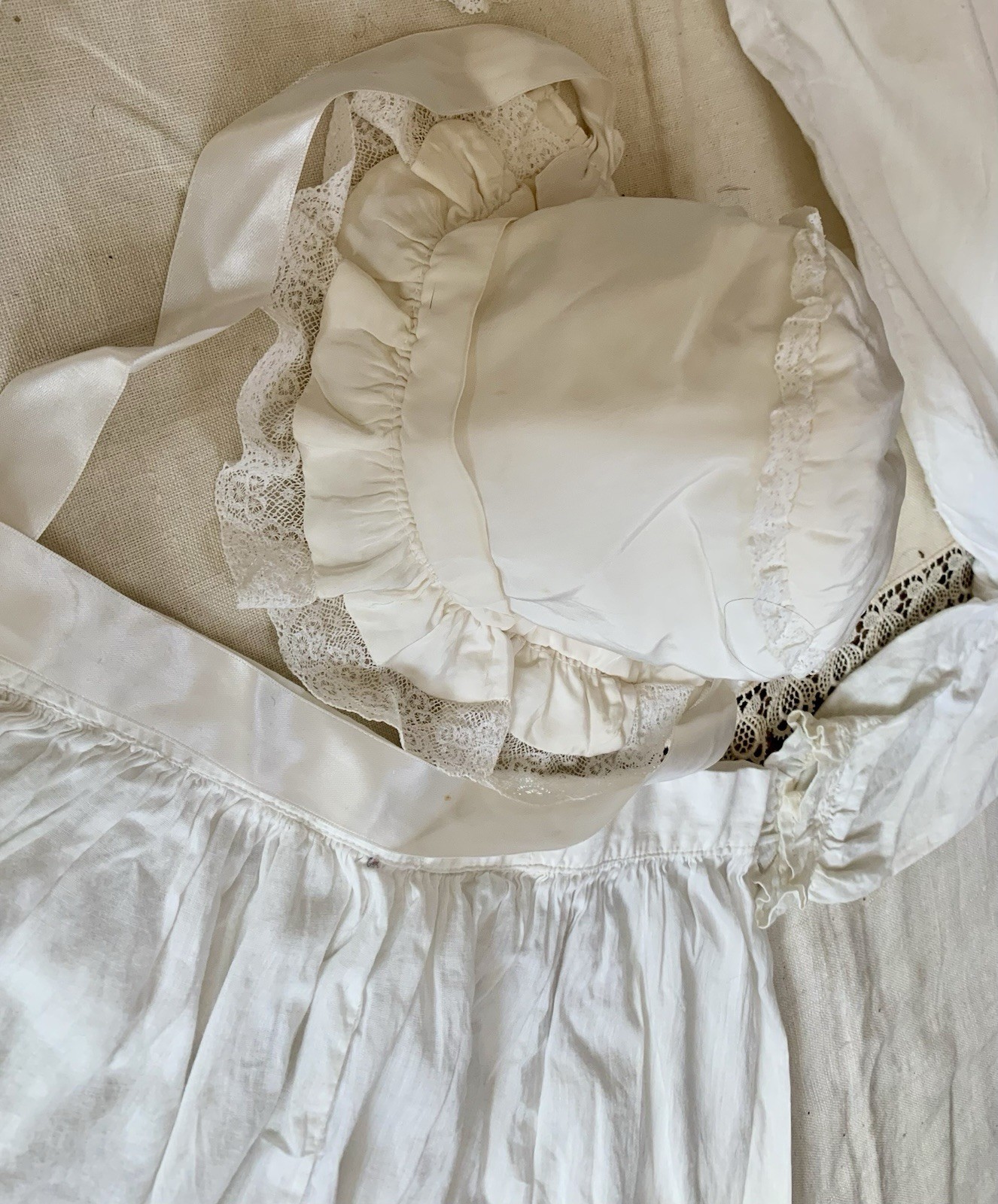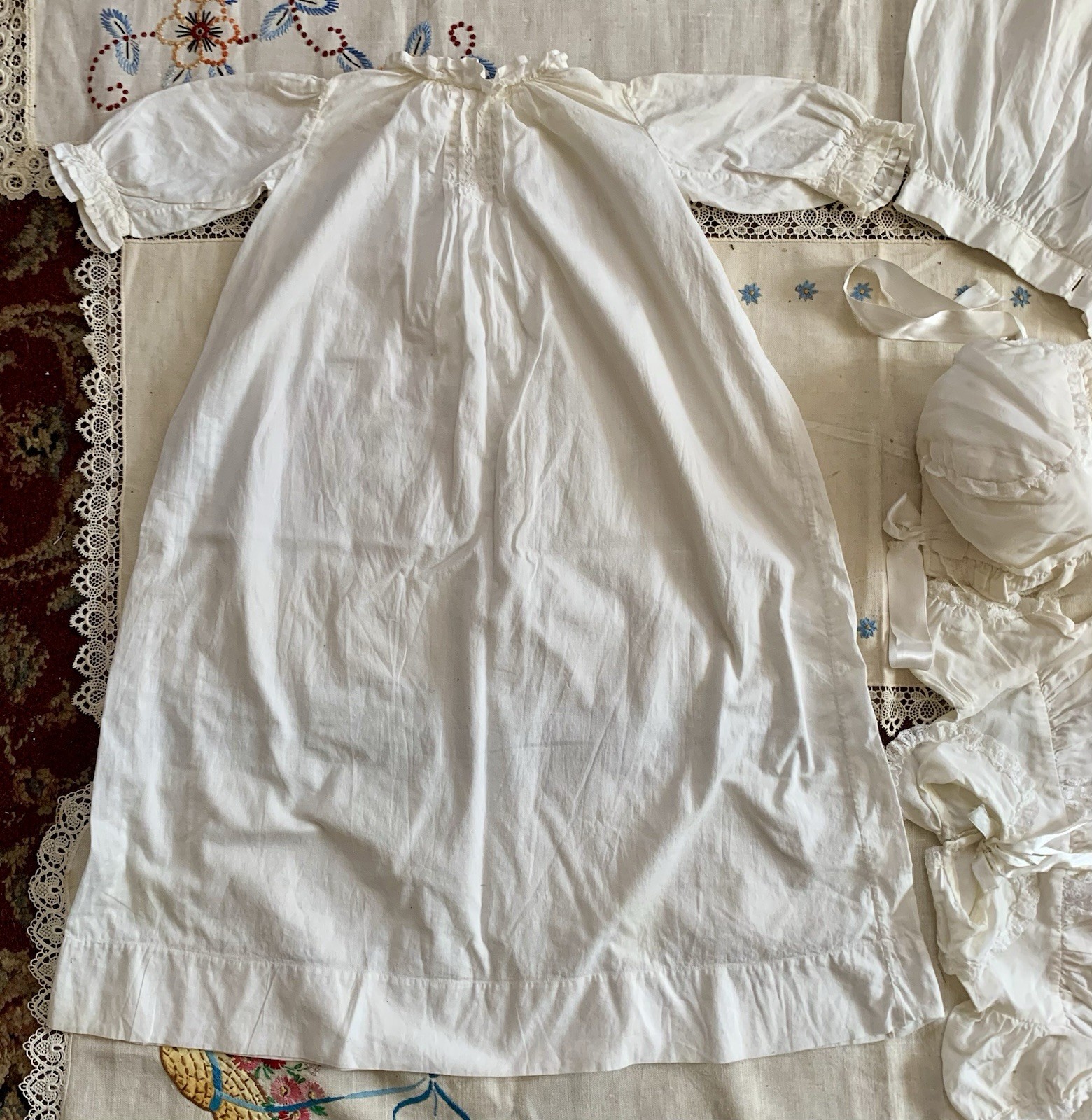 Vintage Baby Child s Long Shirt Lovely Silk Dress With Lace Skirt Sweet Hat