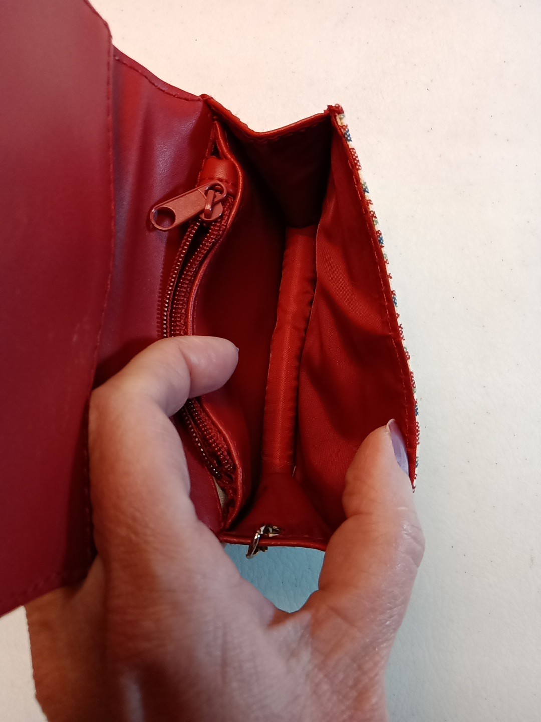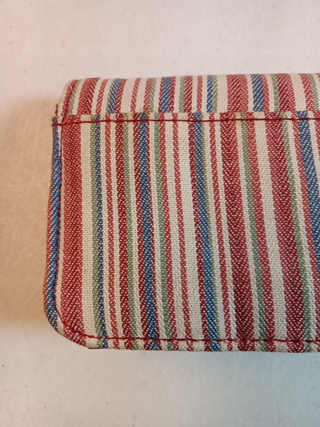 как выглядит Longaberger Homestead Striped Magnetic Closure Coin Purse W/ Key Chain, 3inX5in" фото