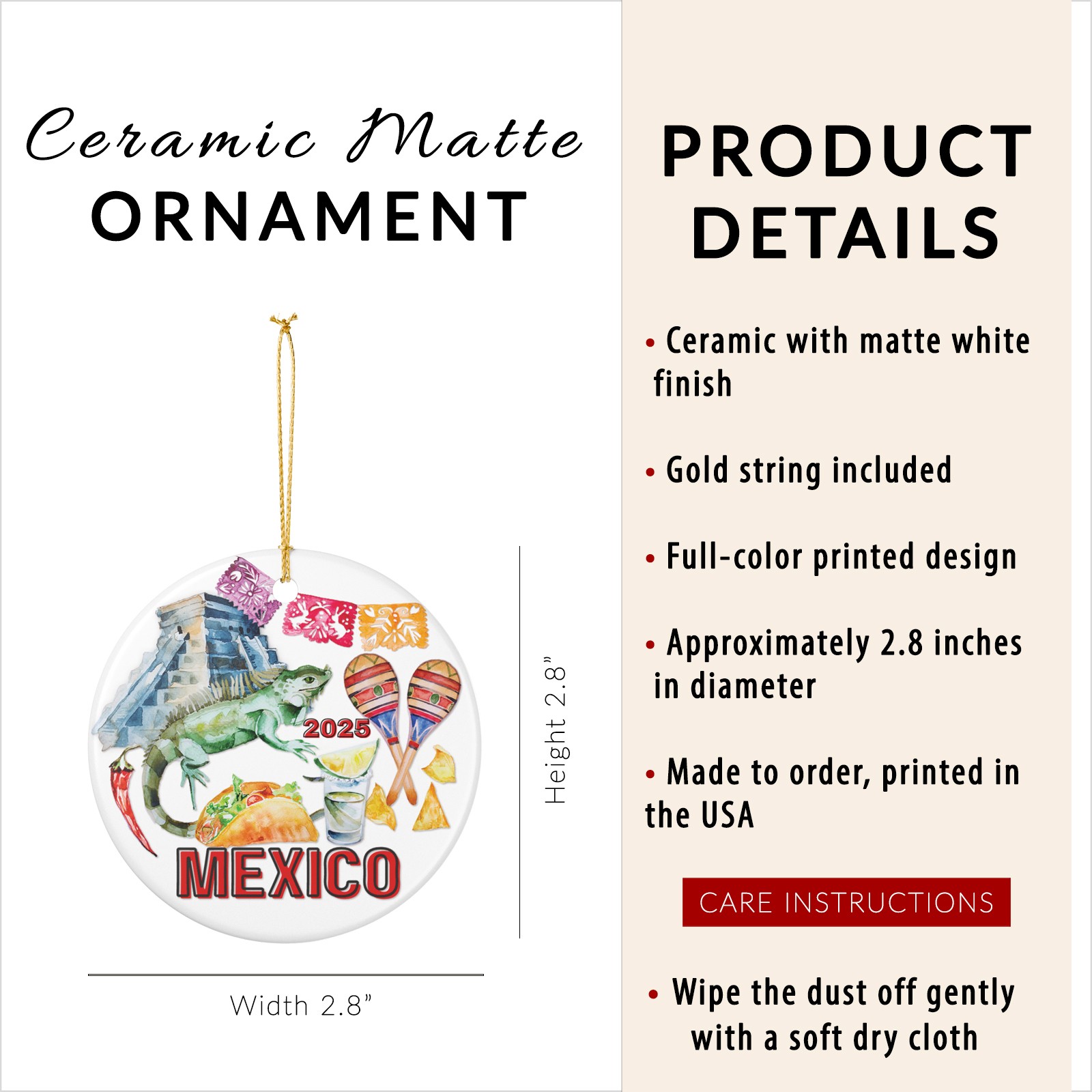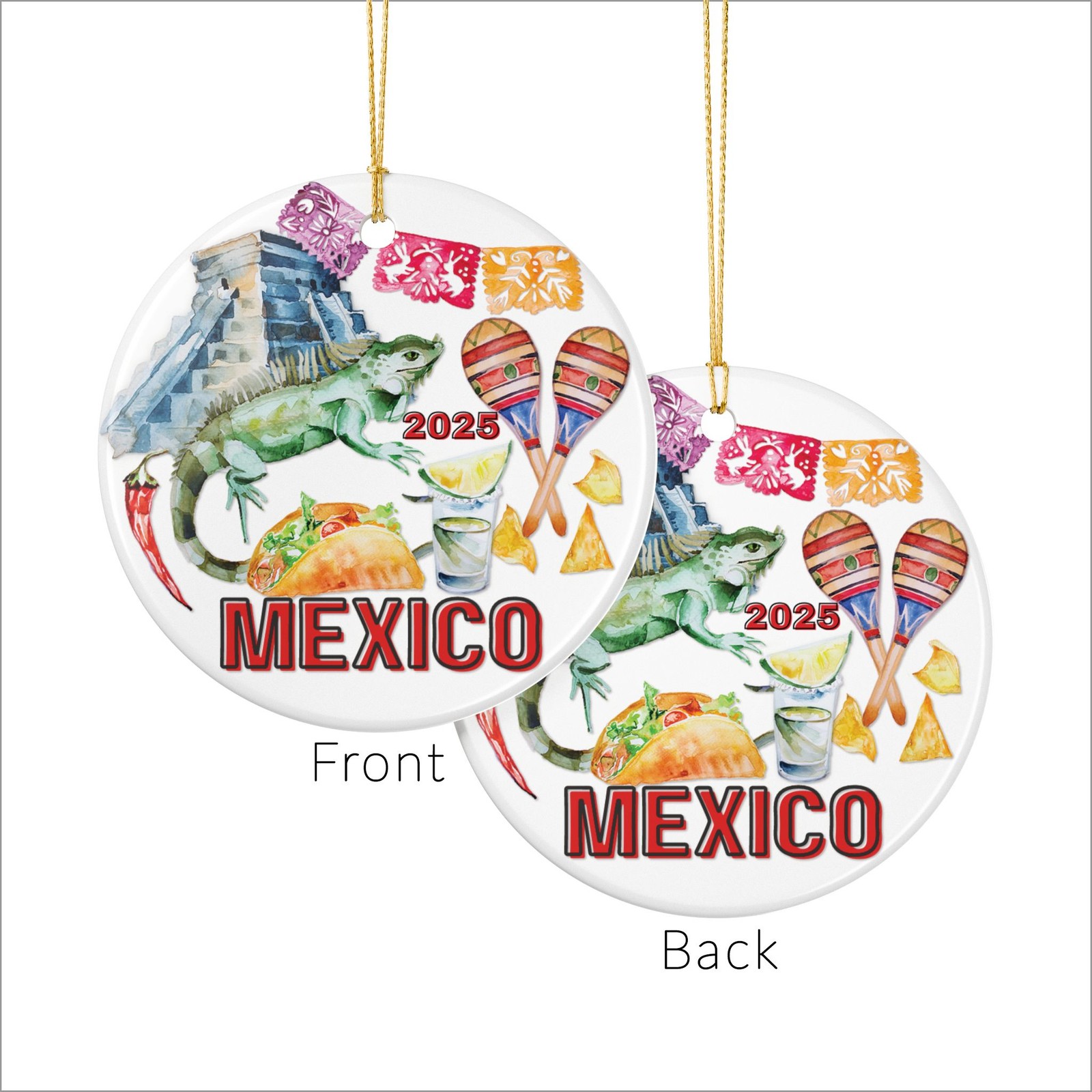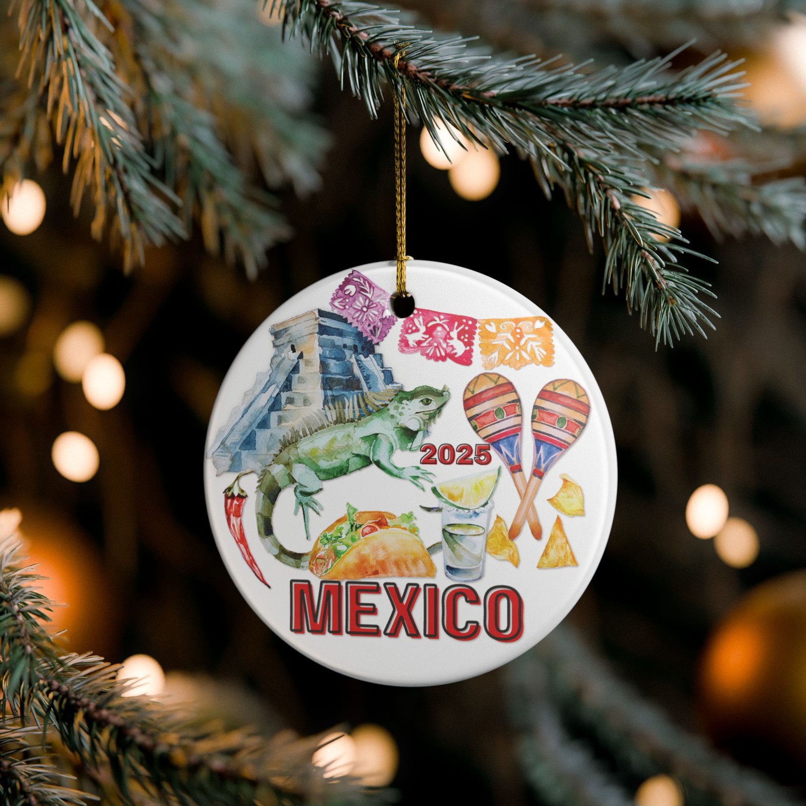 Mexico Ceramic Ornament, Cultural Icons Collage, Custom Year