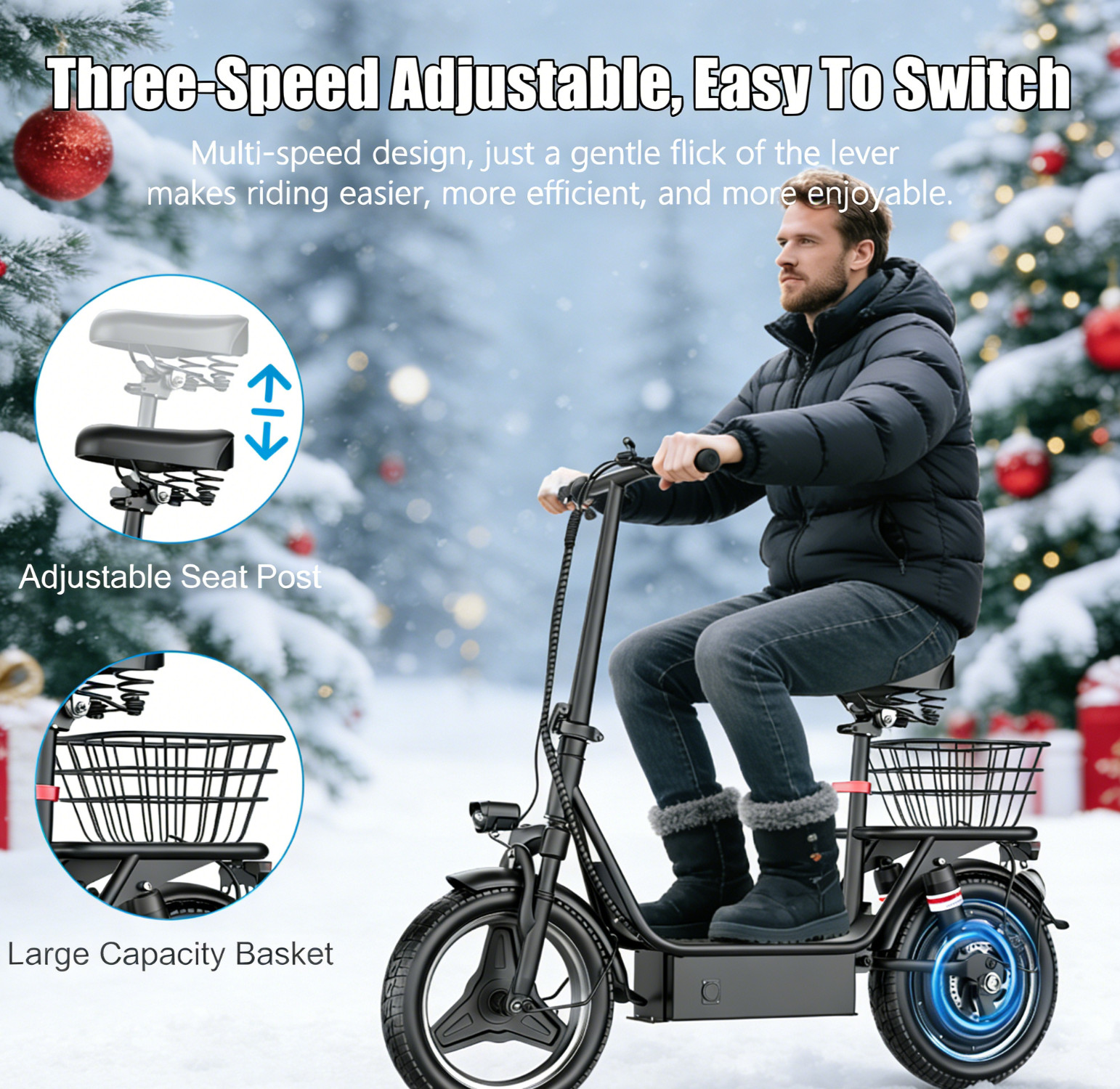 Electric Scooter with Seat 45Miles 30MPH 14 Adjustable Commuting Scooter Gifts