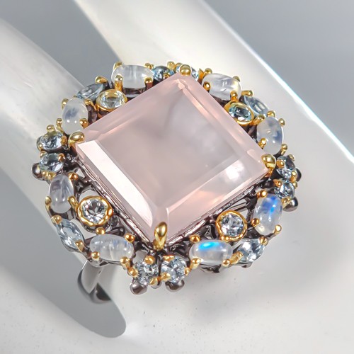 как выглядит Unique ring 30 ct Natural Rose Quartz Ring 925 Sterling Silver Size 9 /R438759 фото
